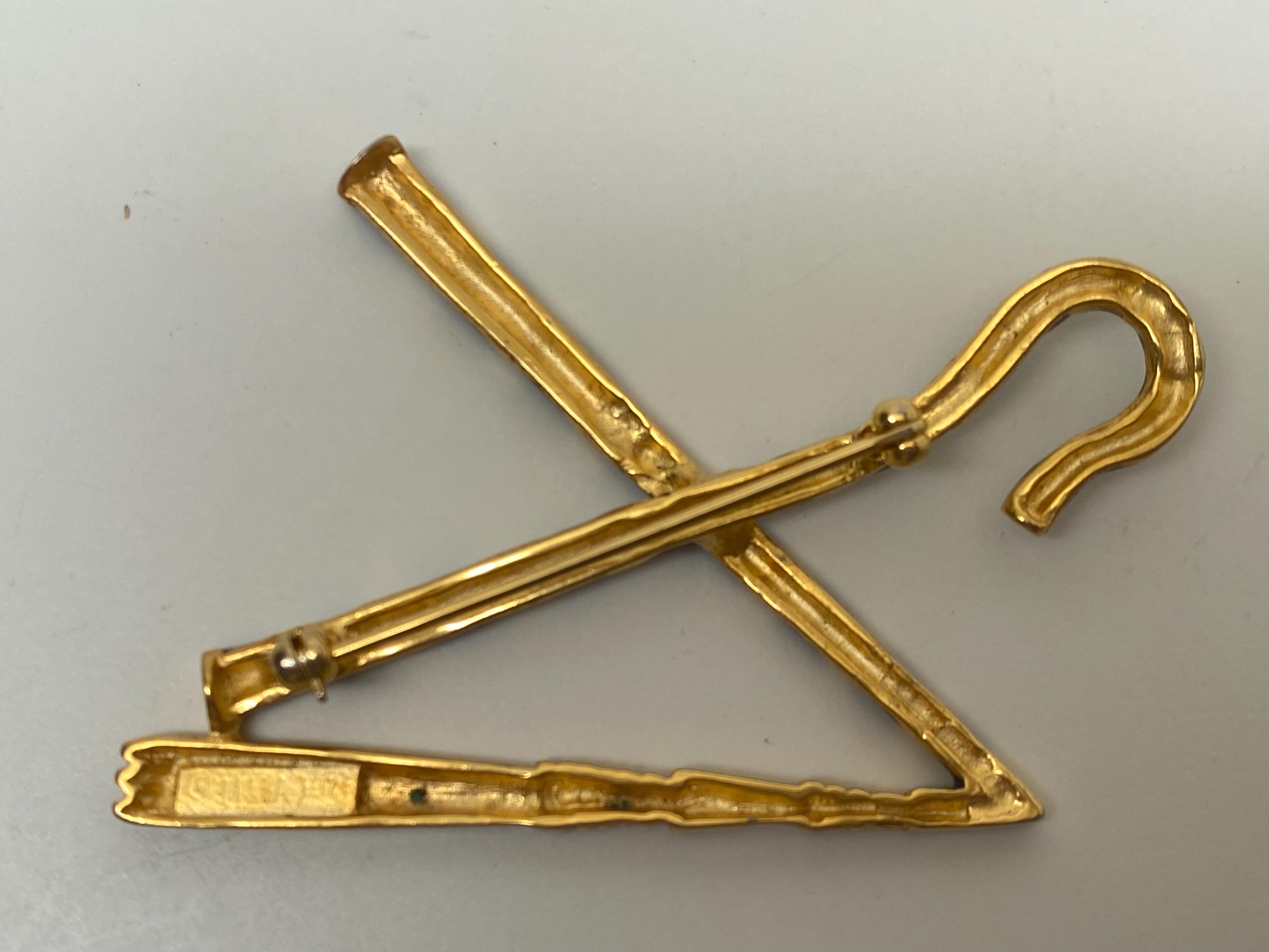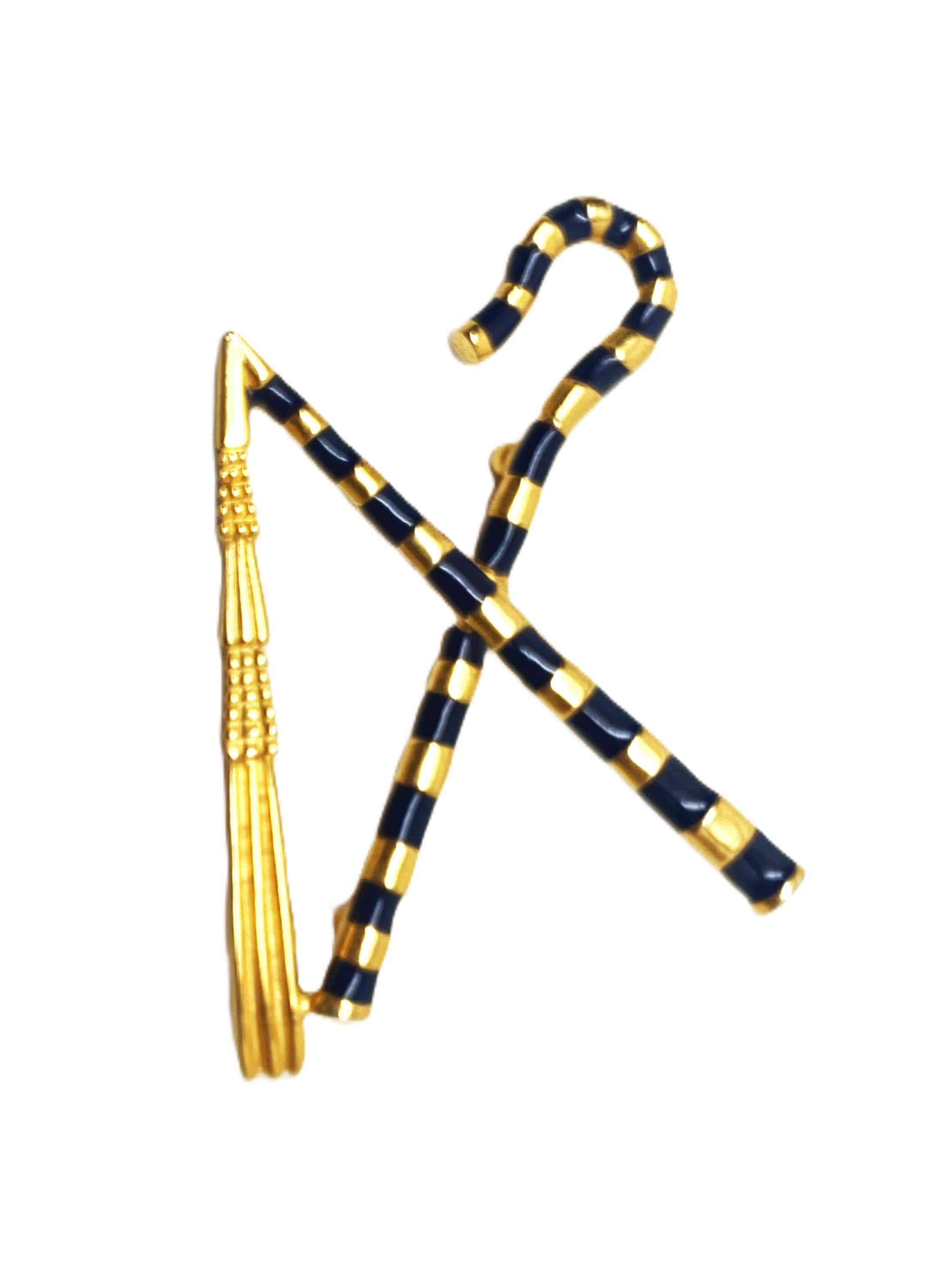 Vintage MMA Egyptian Revival Brooch Blue Enamel Royalty Crook and Flail Brooch