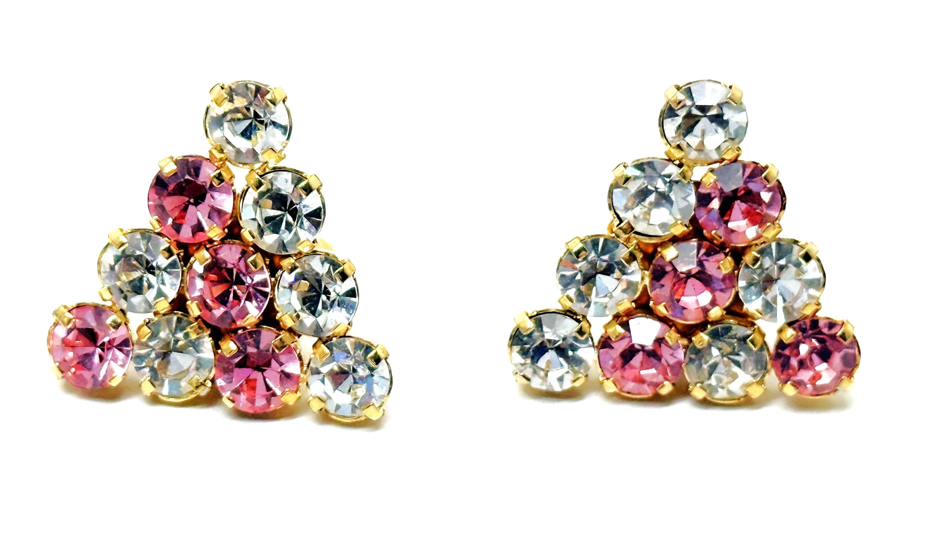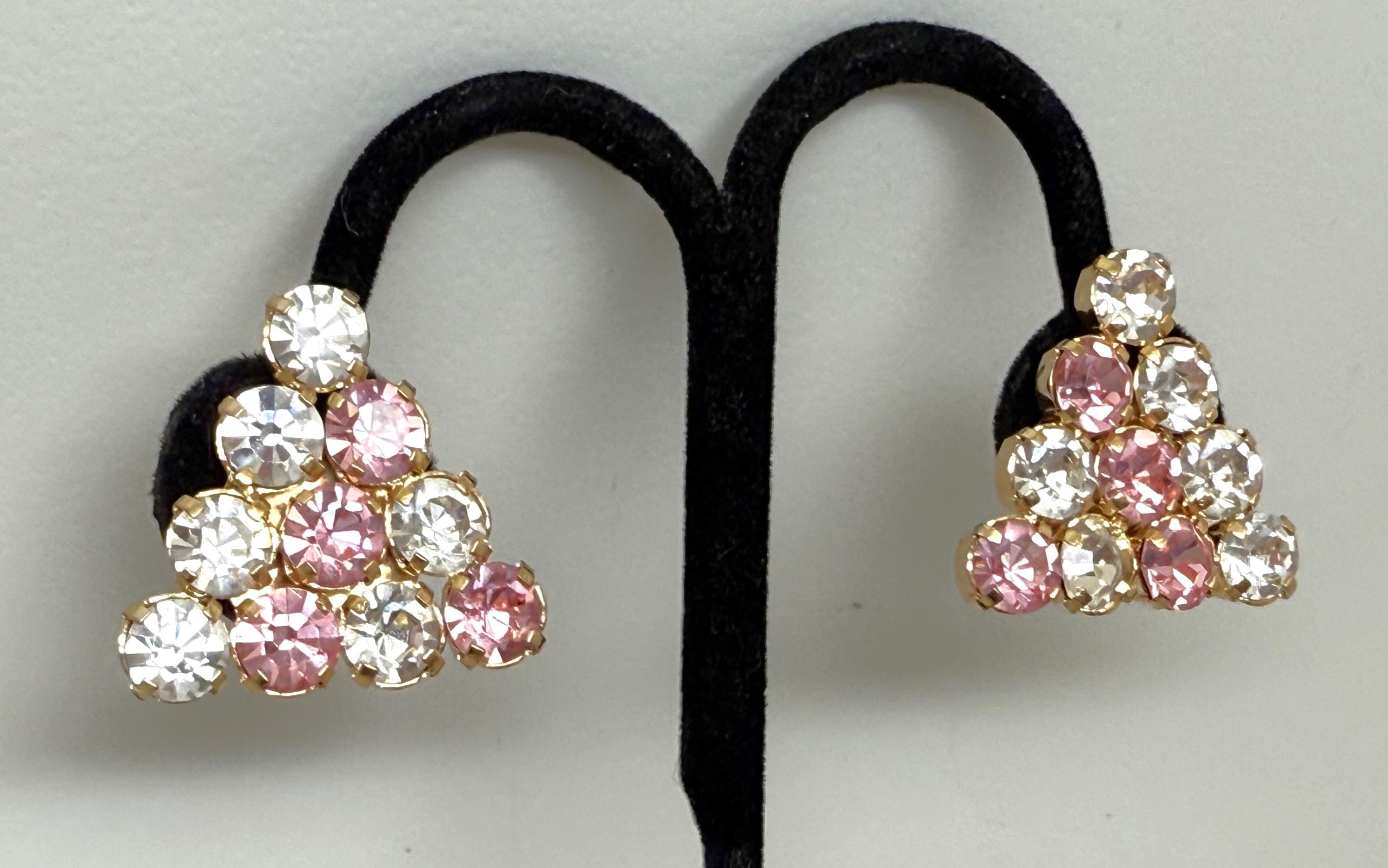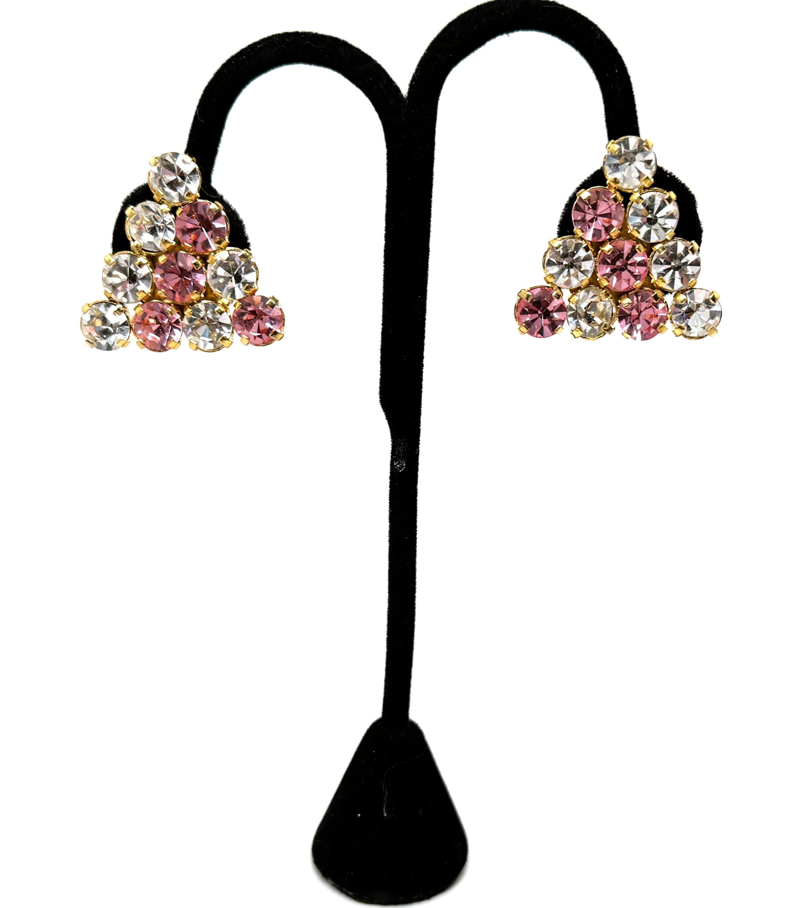 Vintage Pink & Clear Large Rhinestone Clip on Earrings