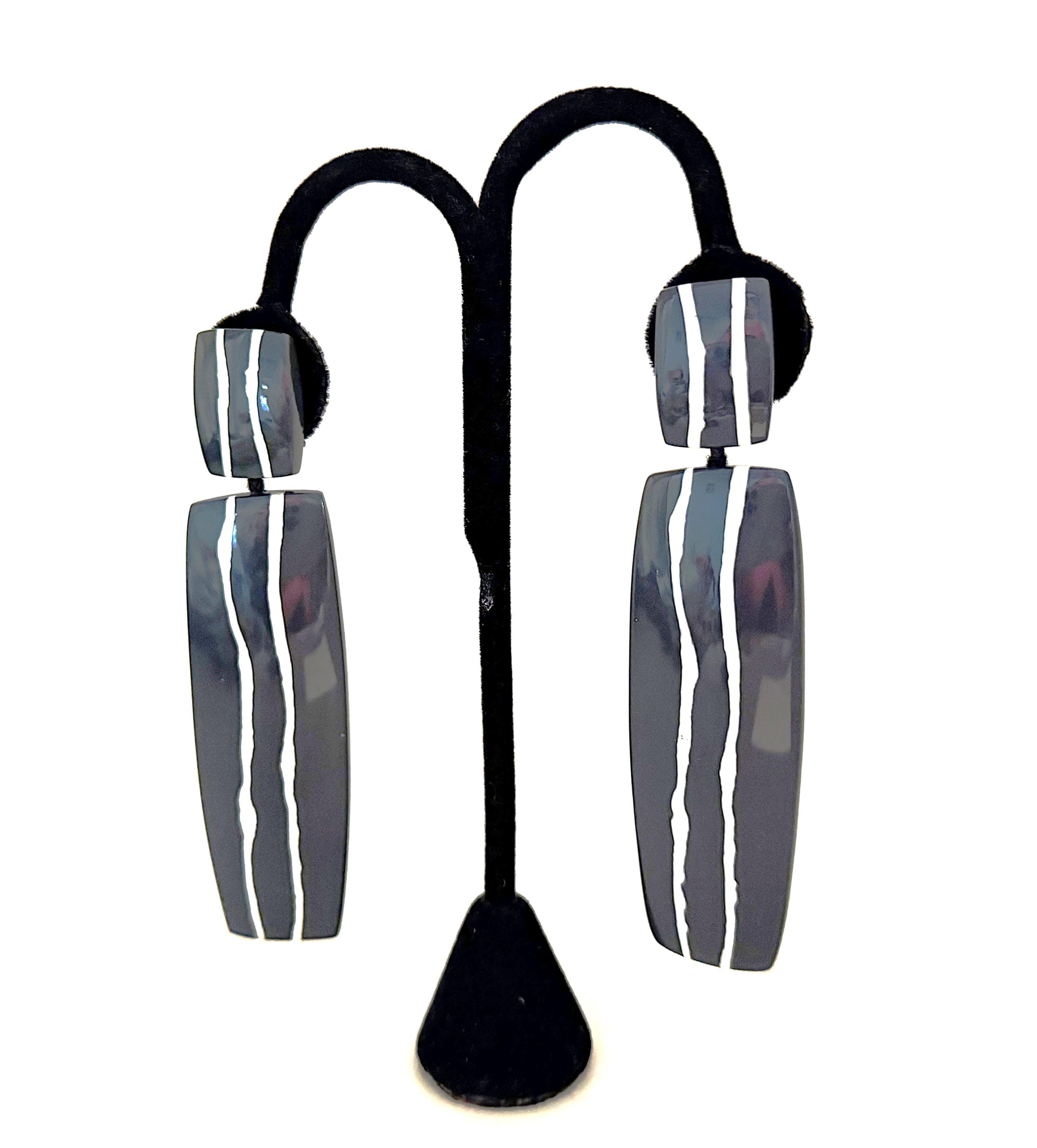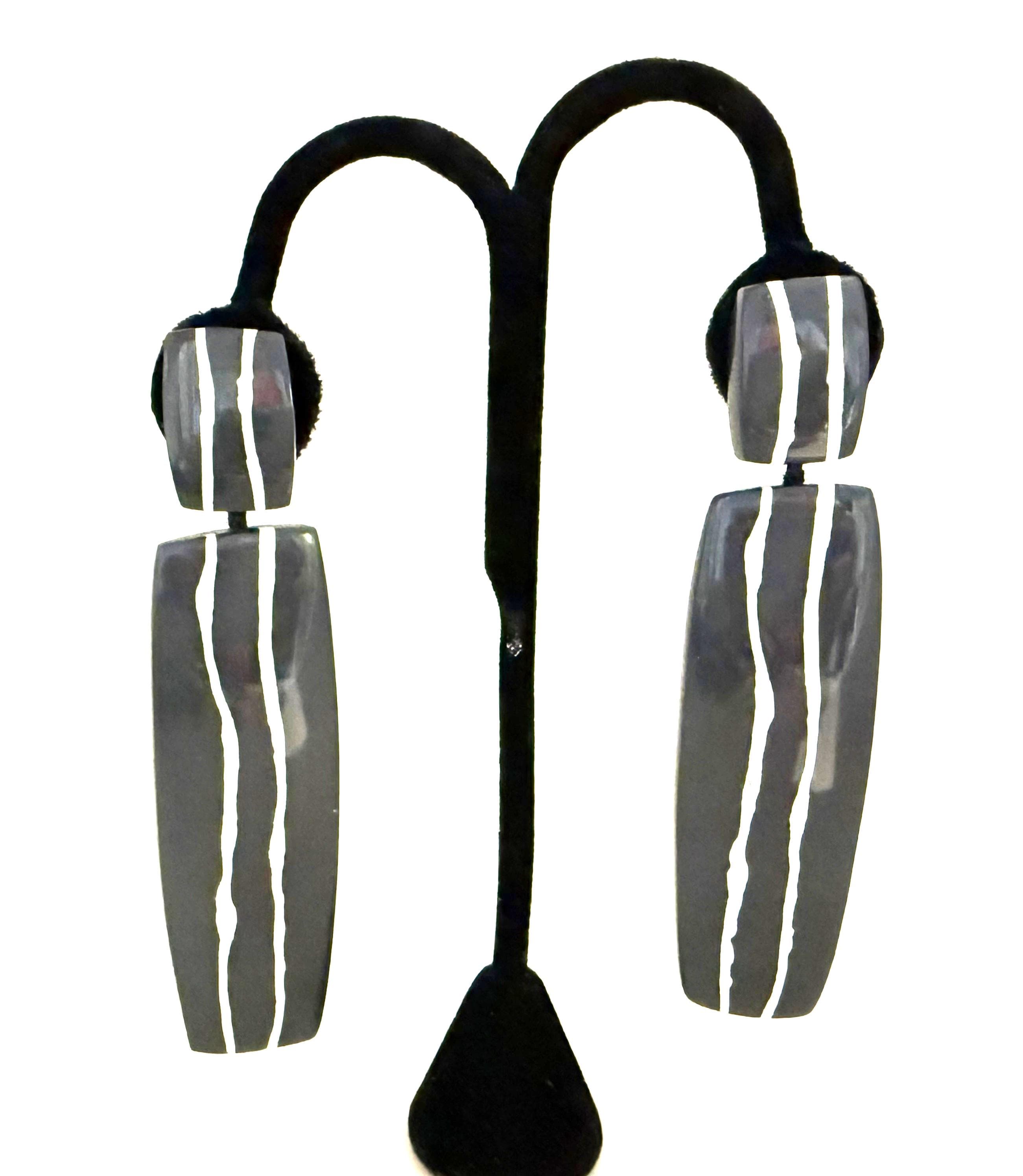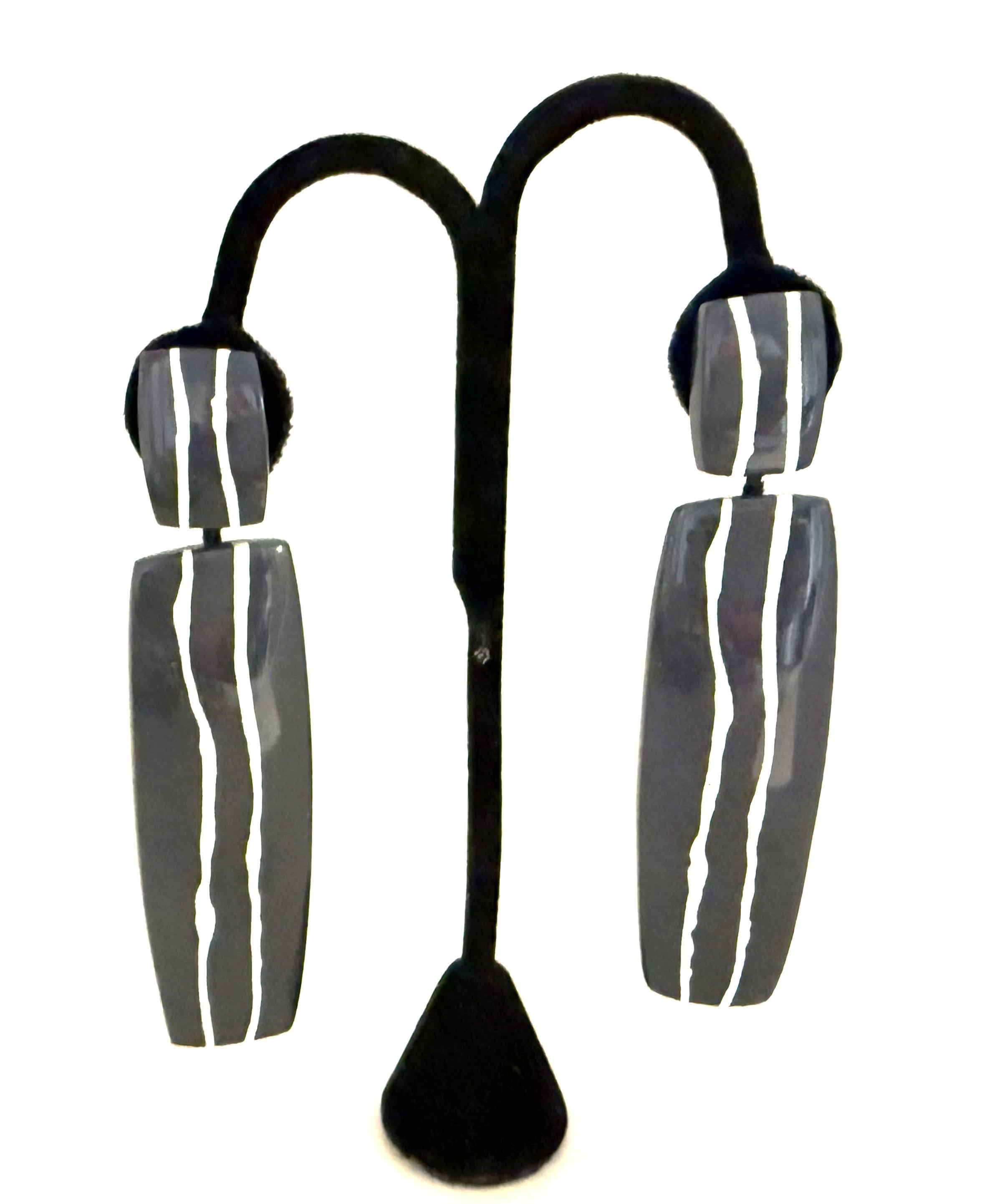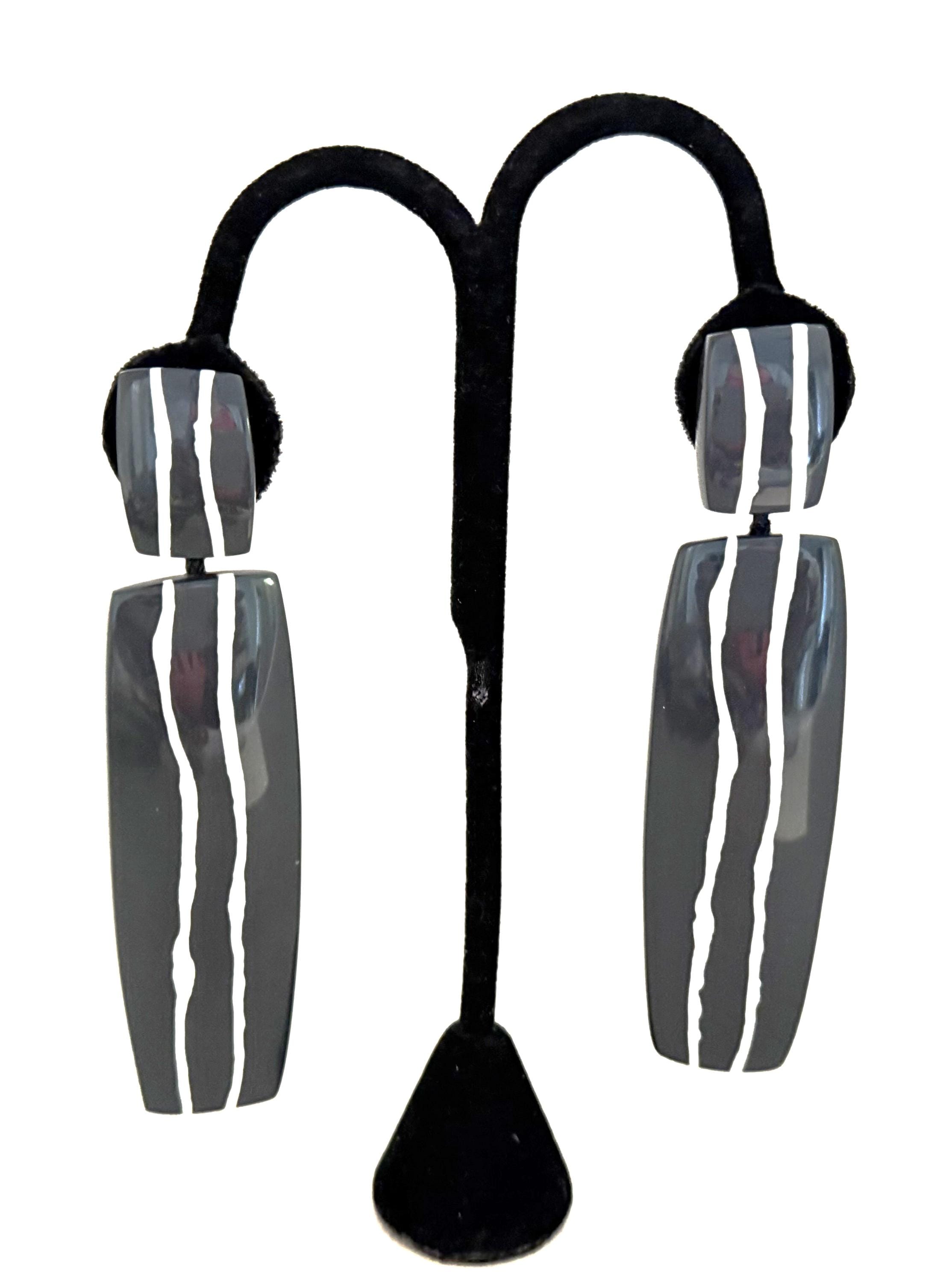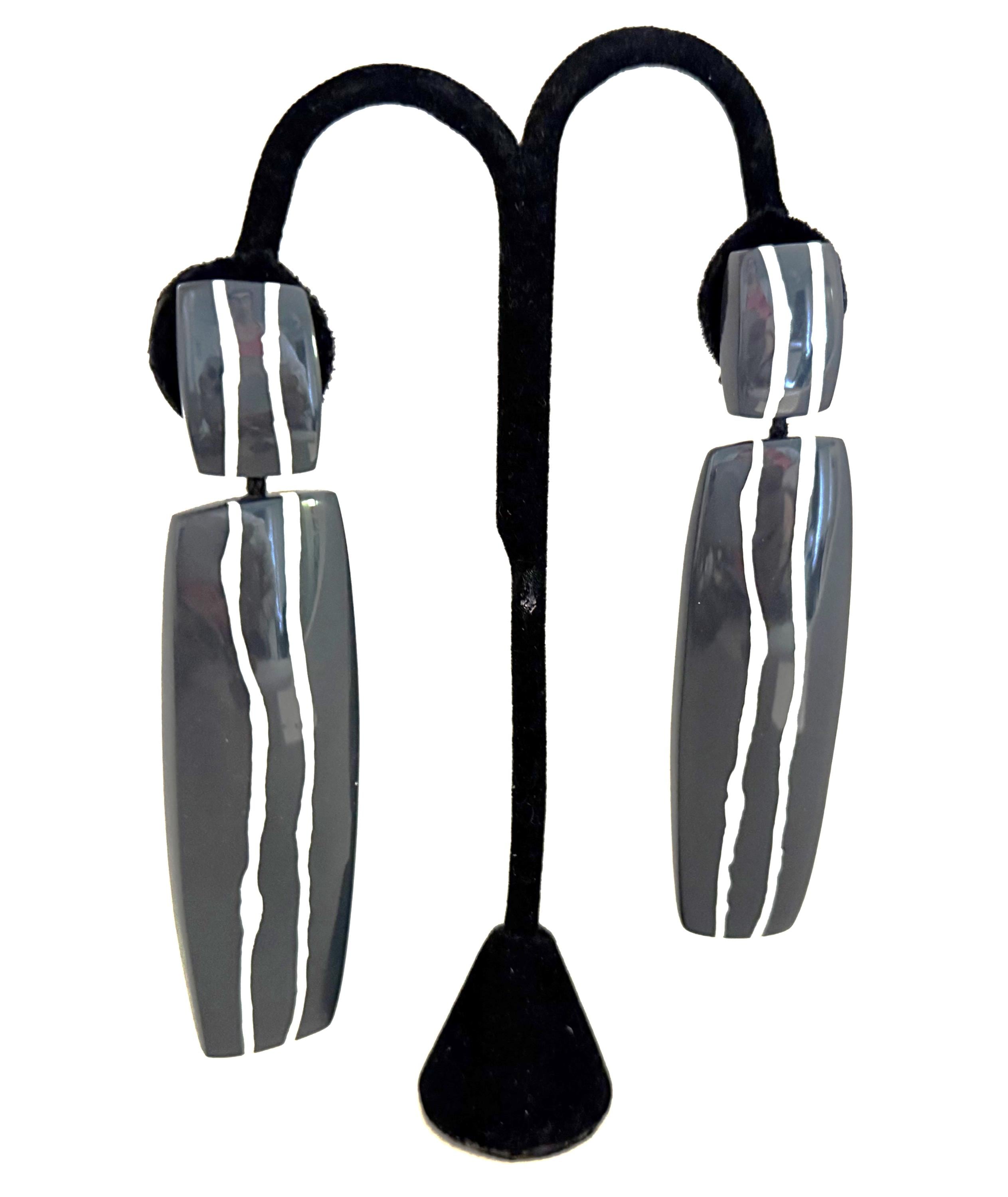 Designer Gerda Lynggaard-Monies Gray & White Acrylic Statement Earrings
