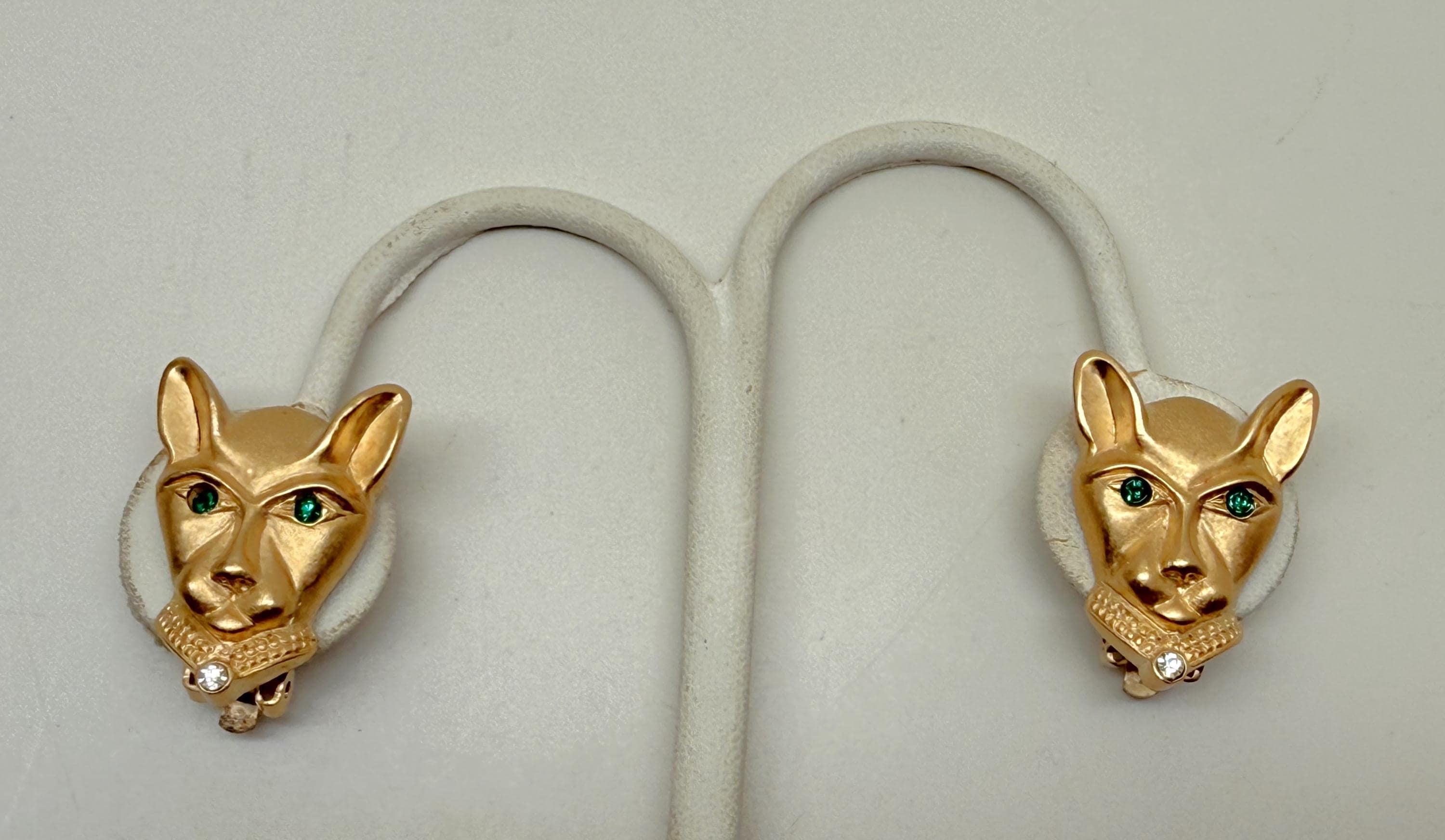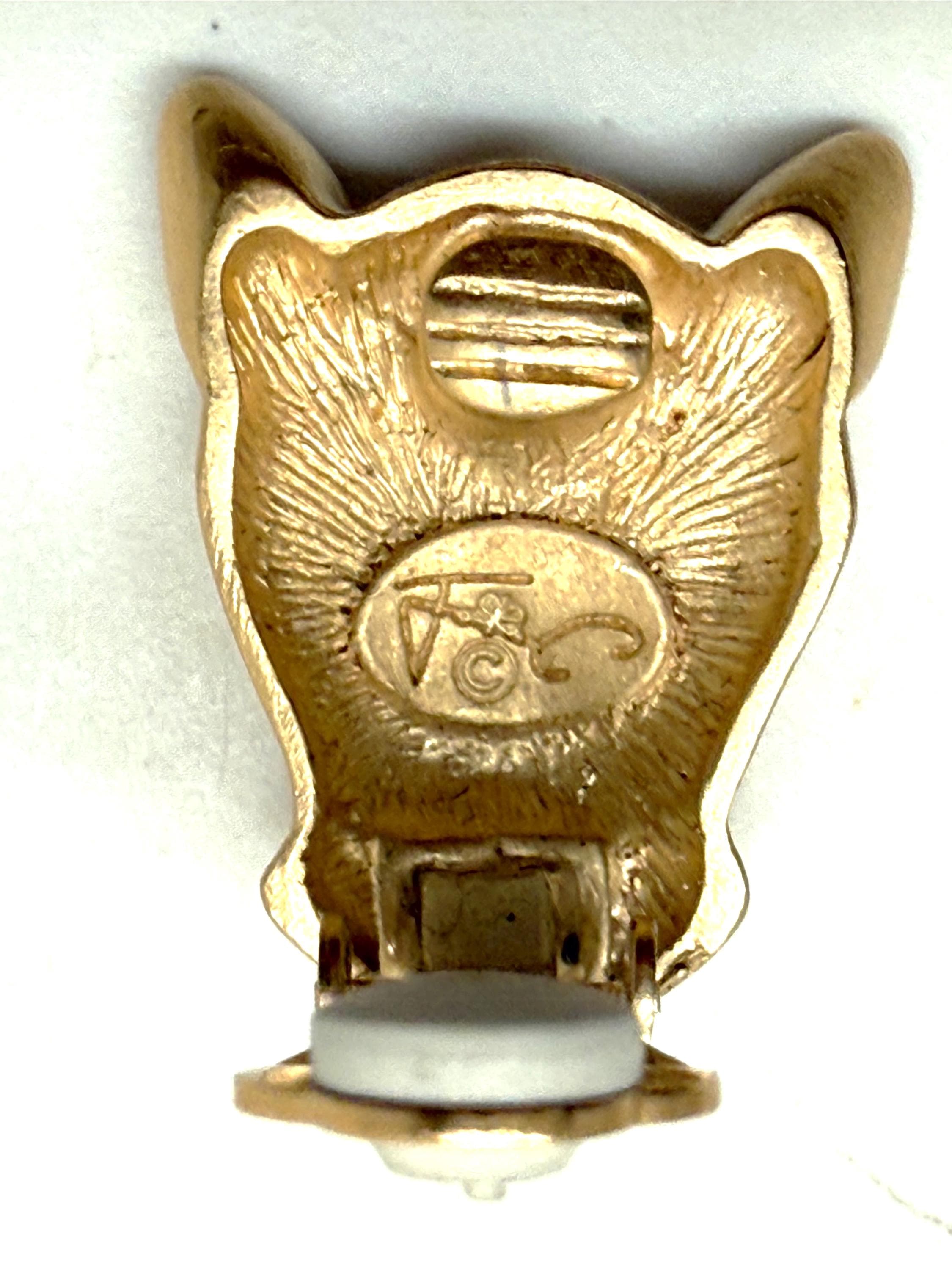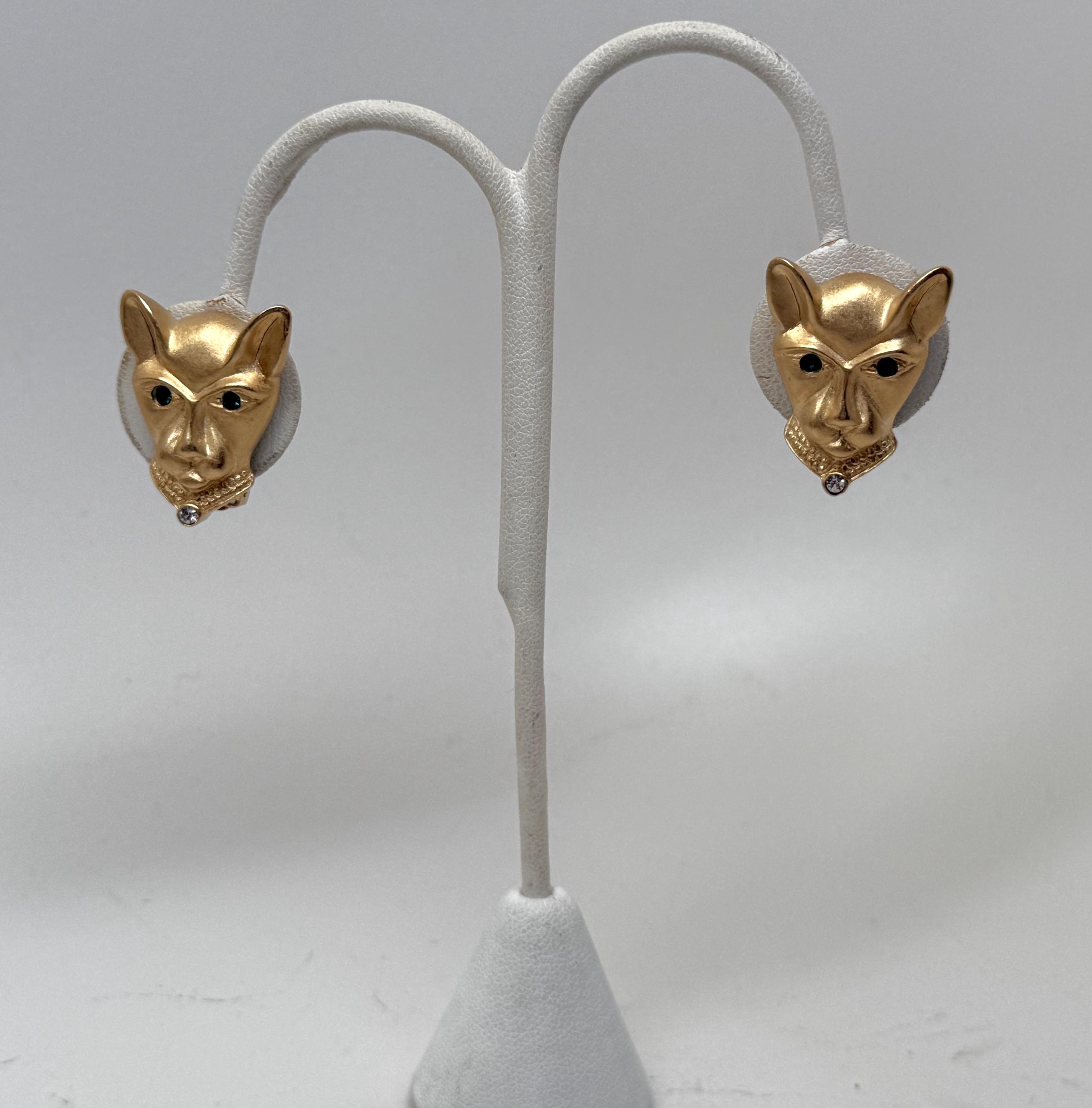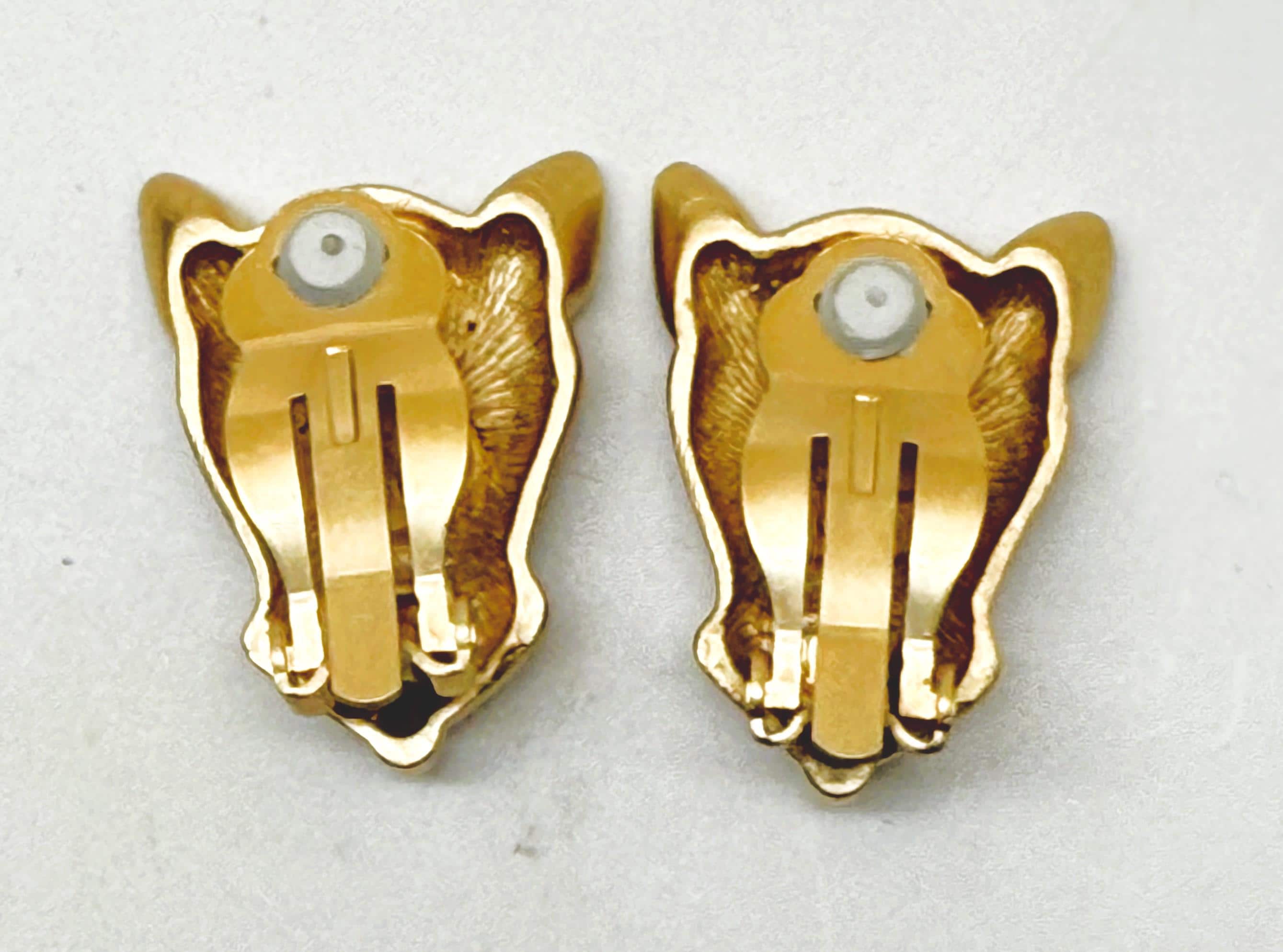 Vintage Jackie Collins Satin Gold Plated Egyptian Panther Clip on Earrings