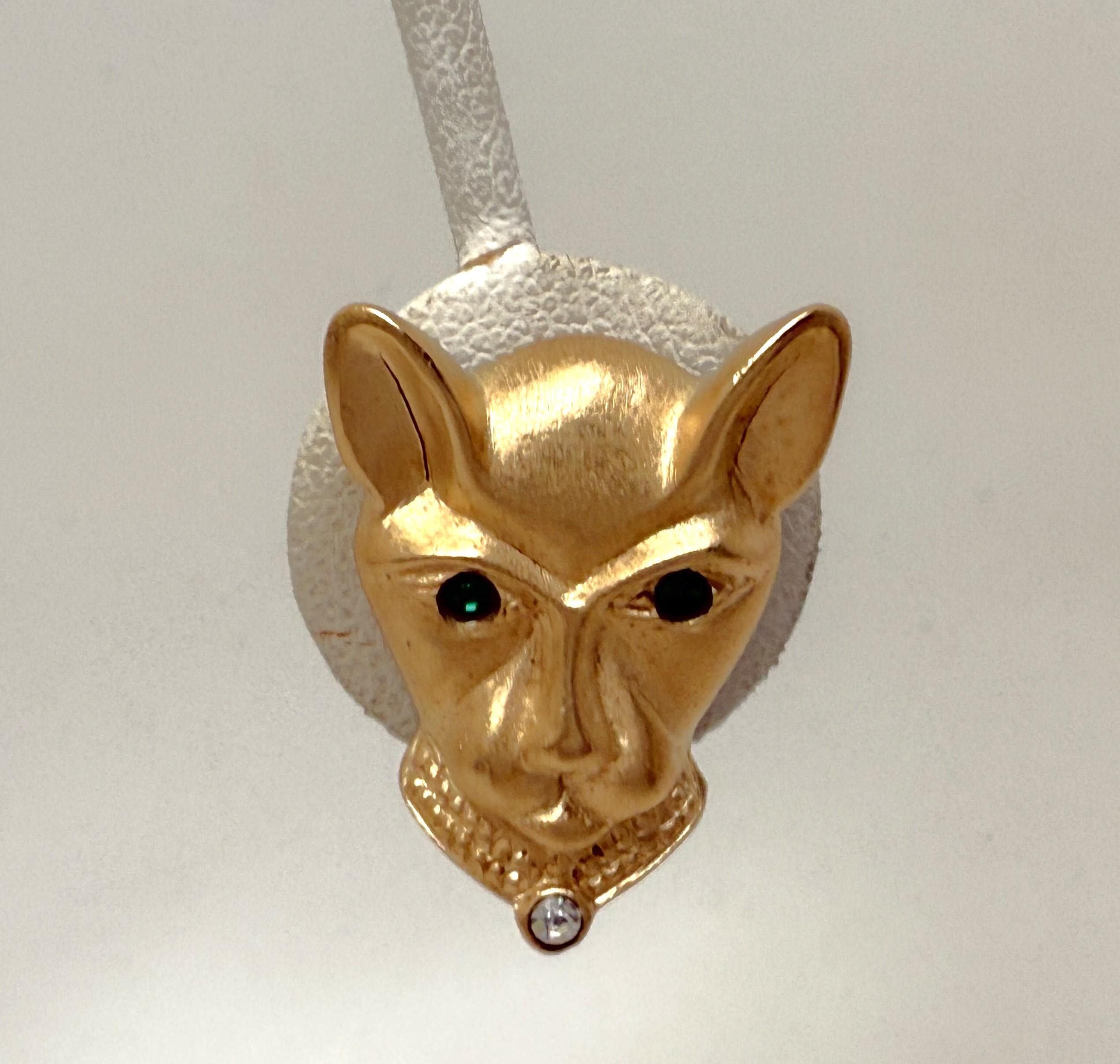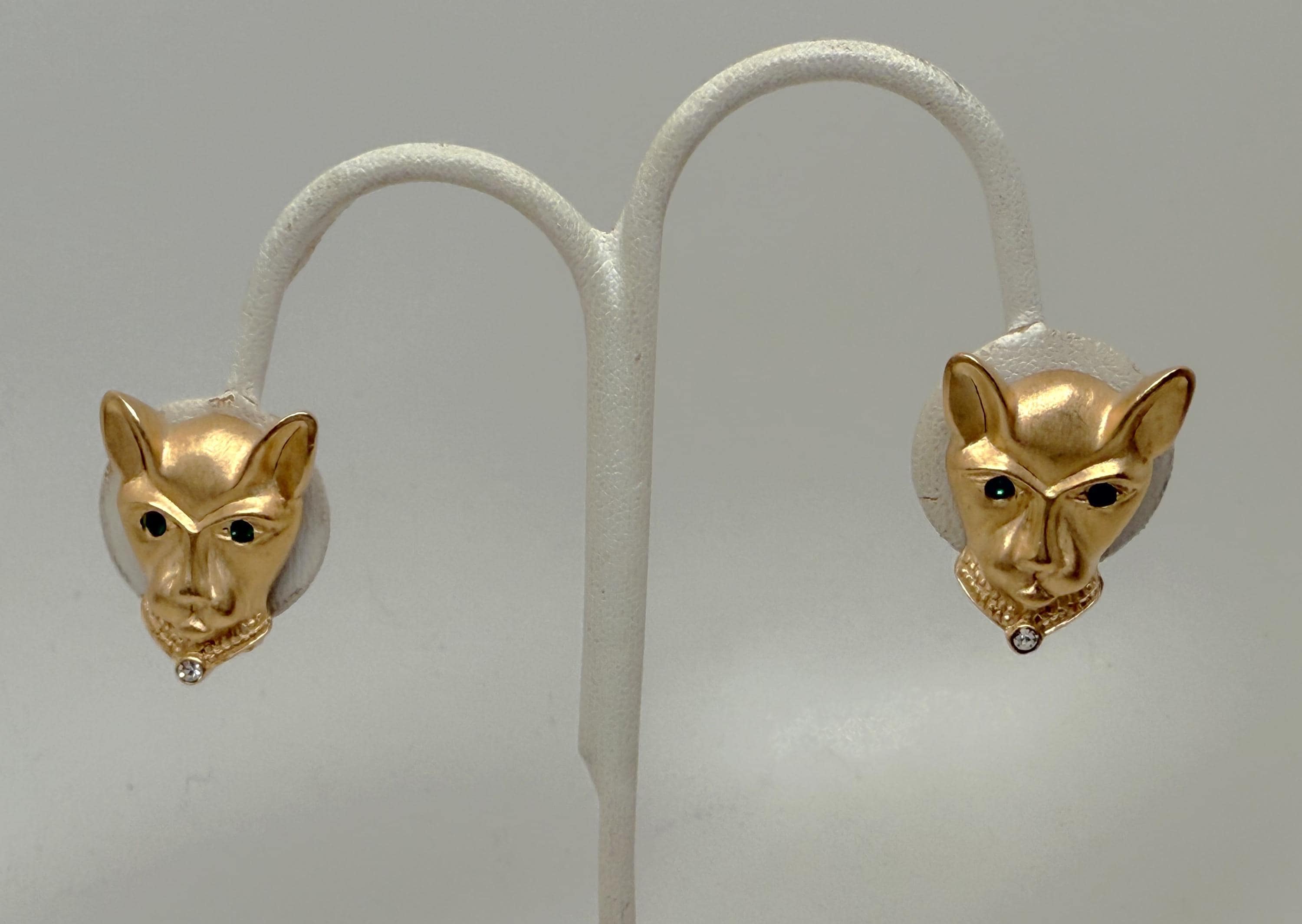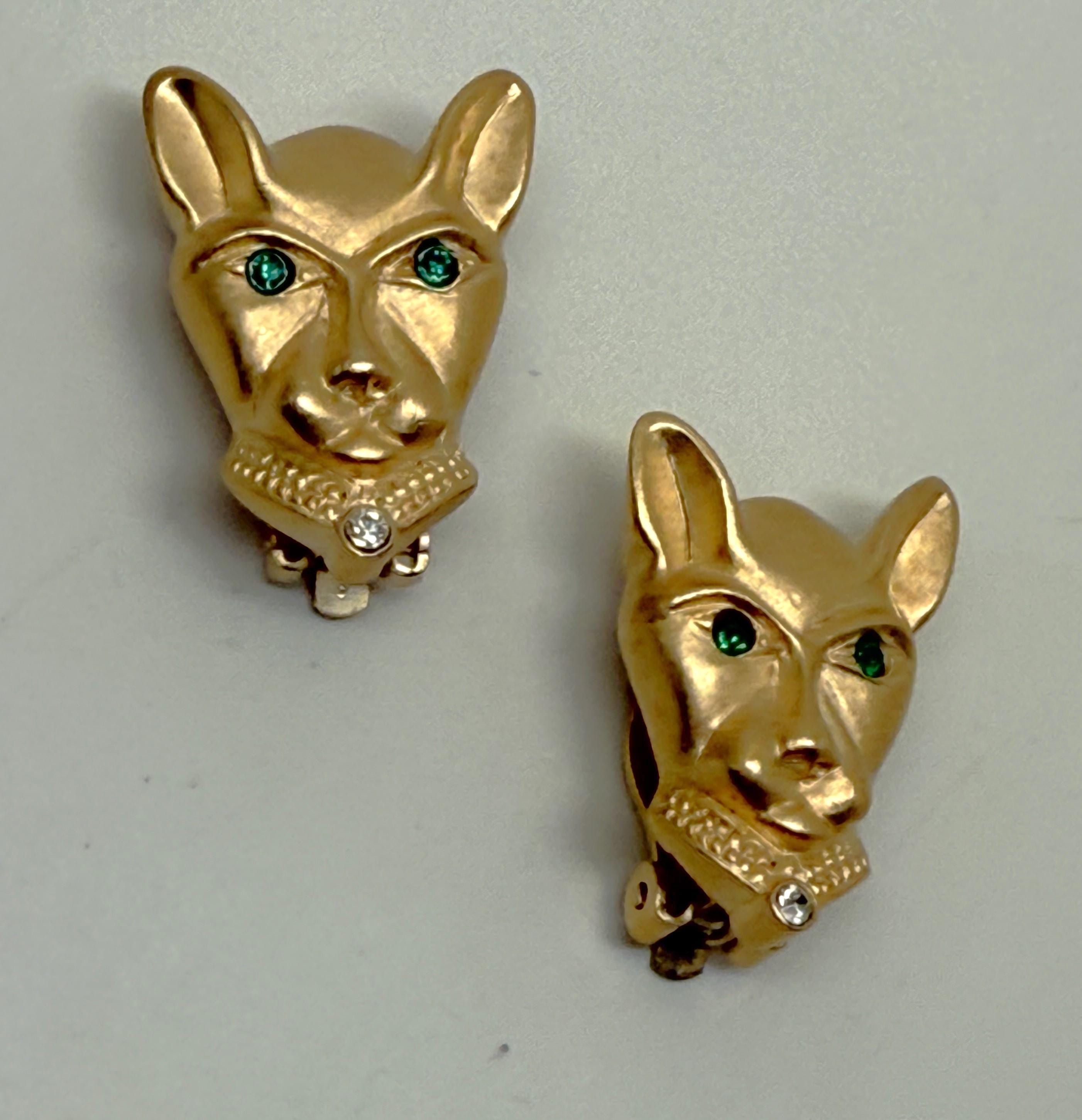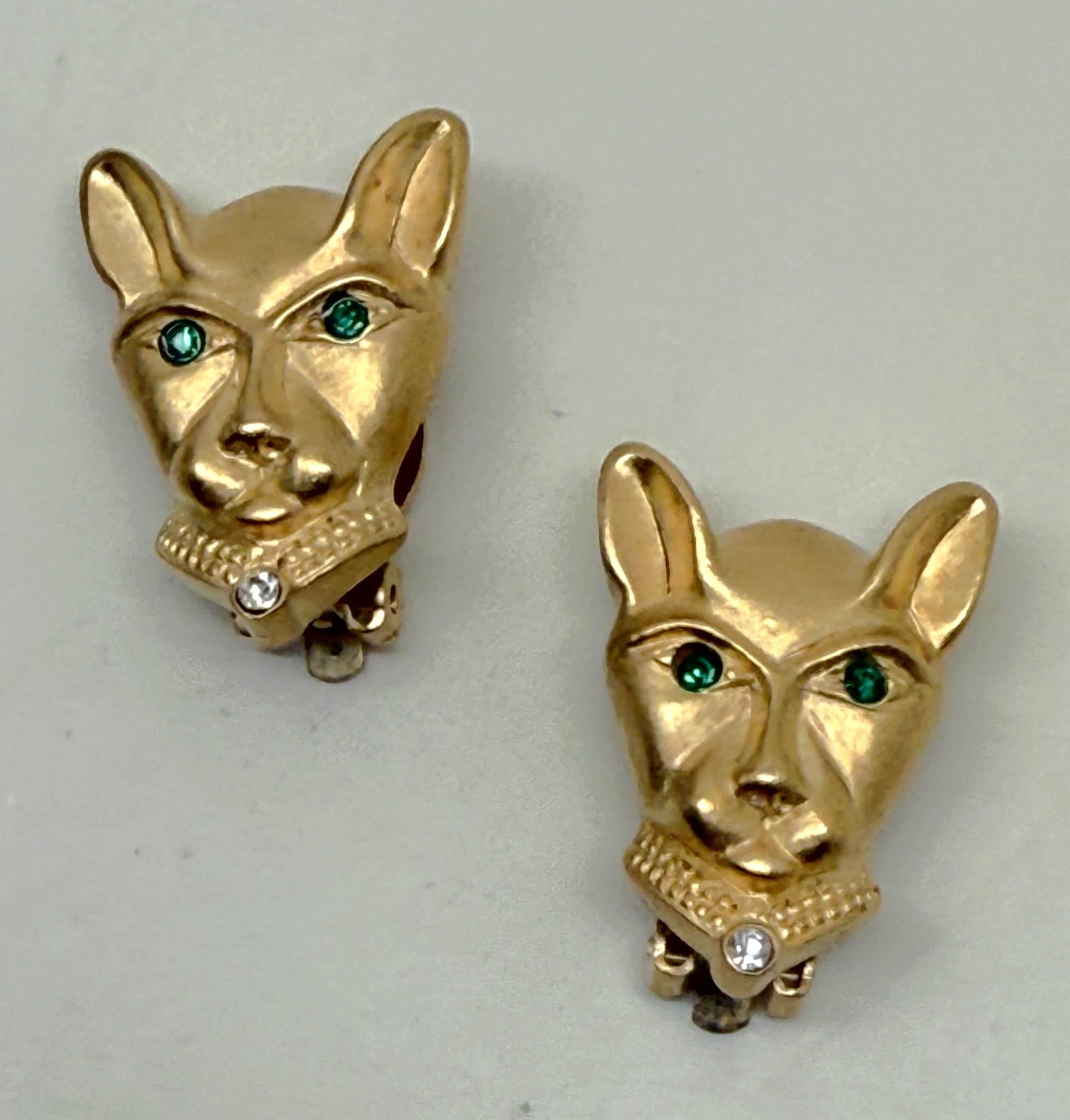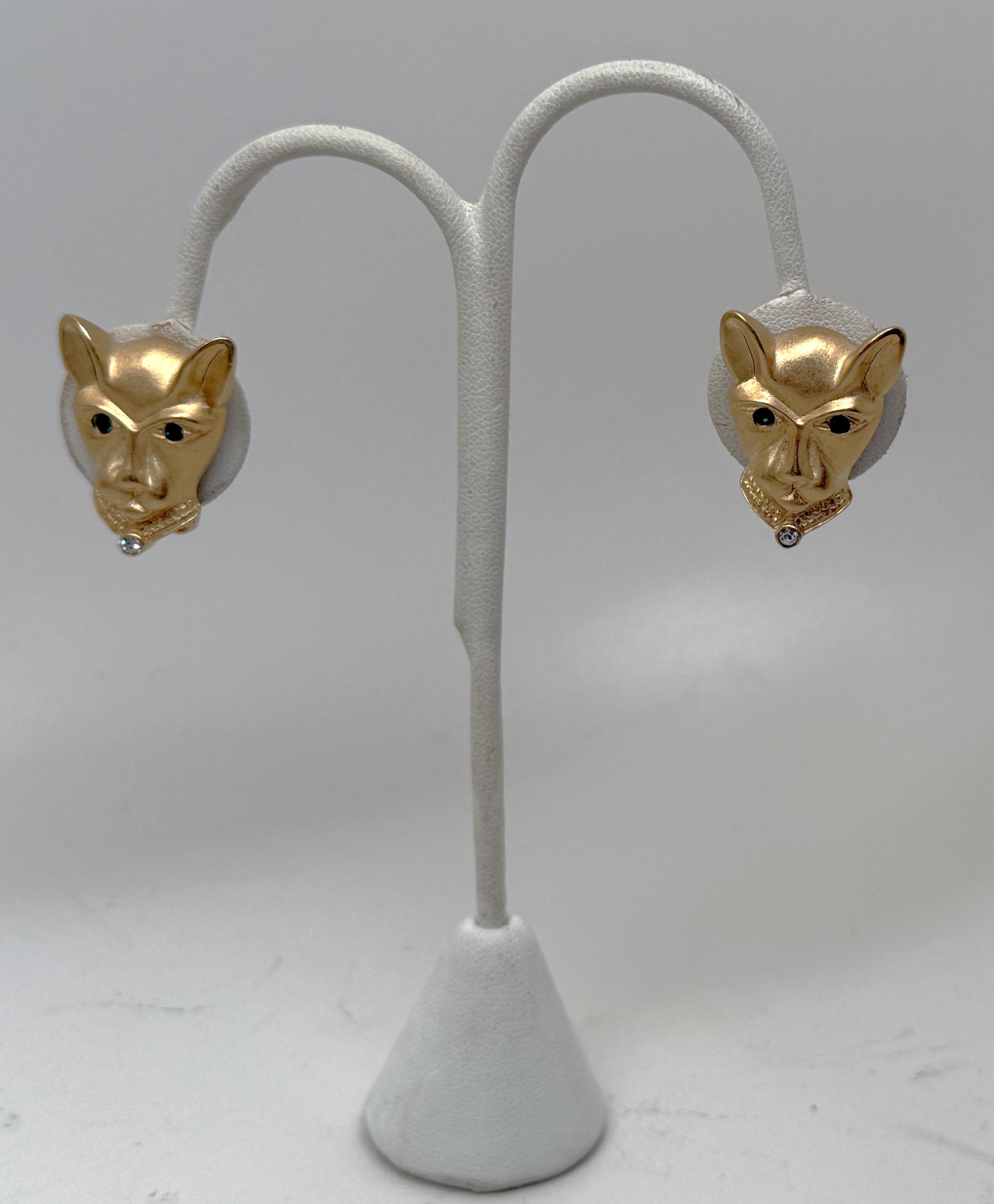 Vintage Jackie Collins Satin Gold Plated Egyptian Panther Clip on Earrings