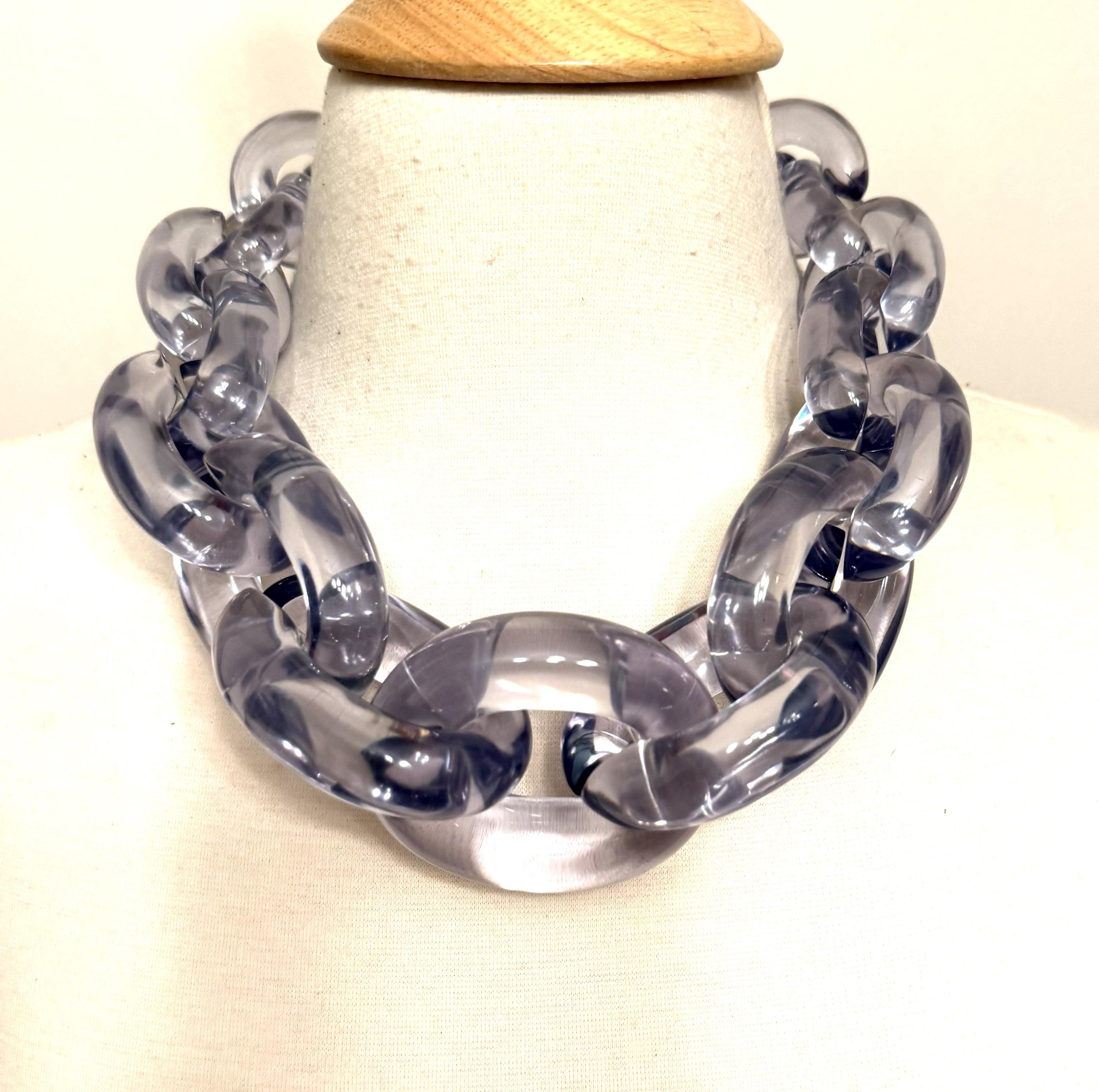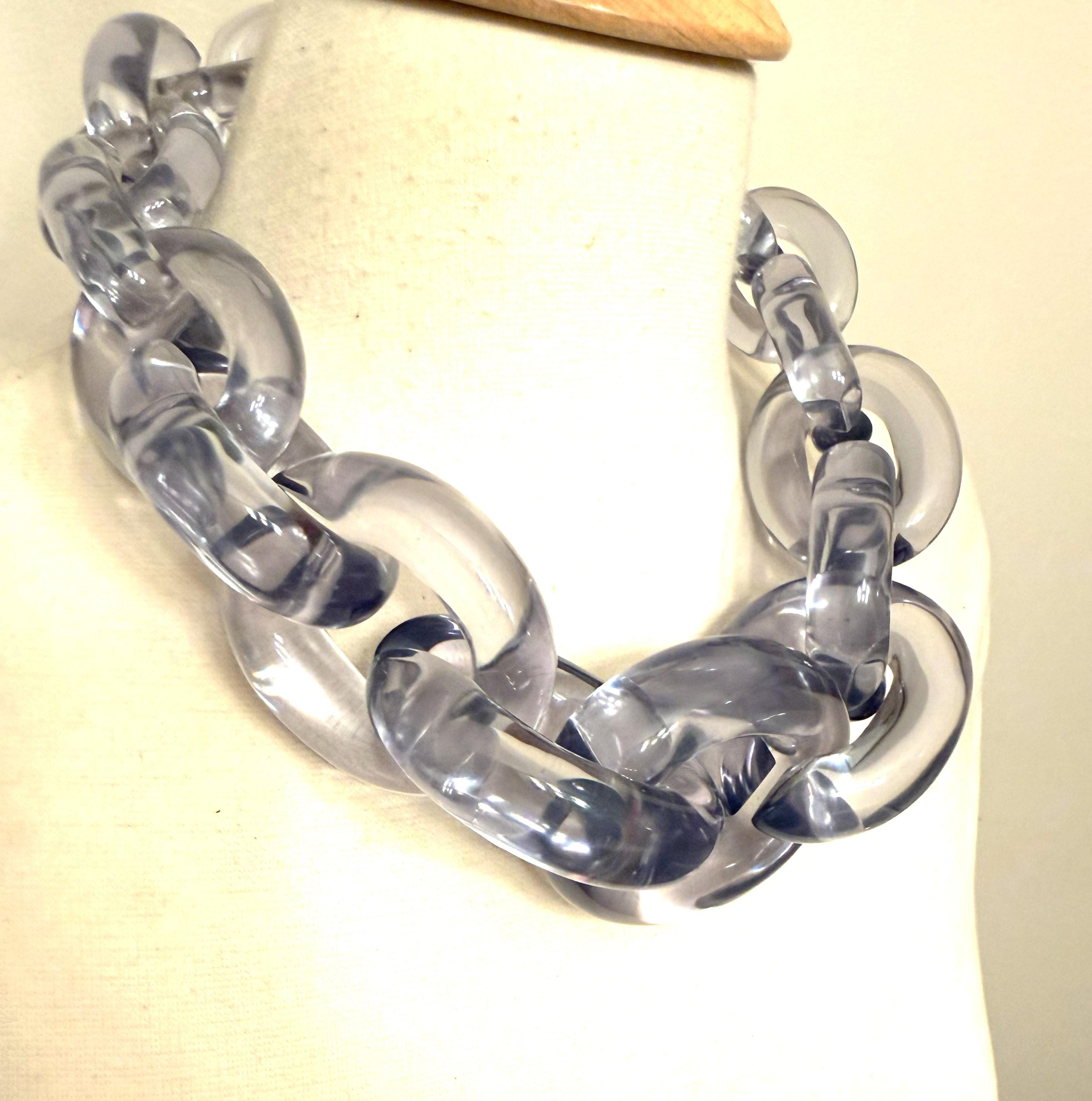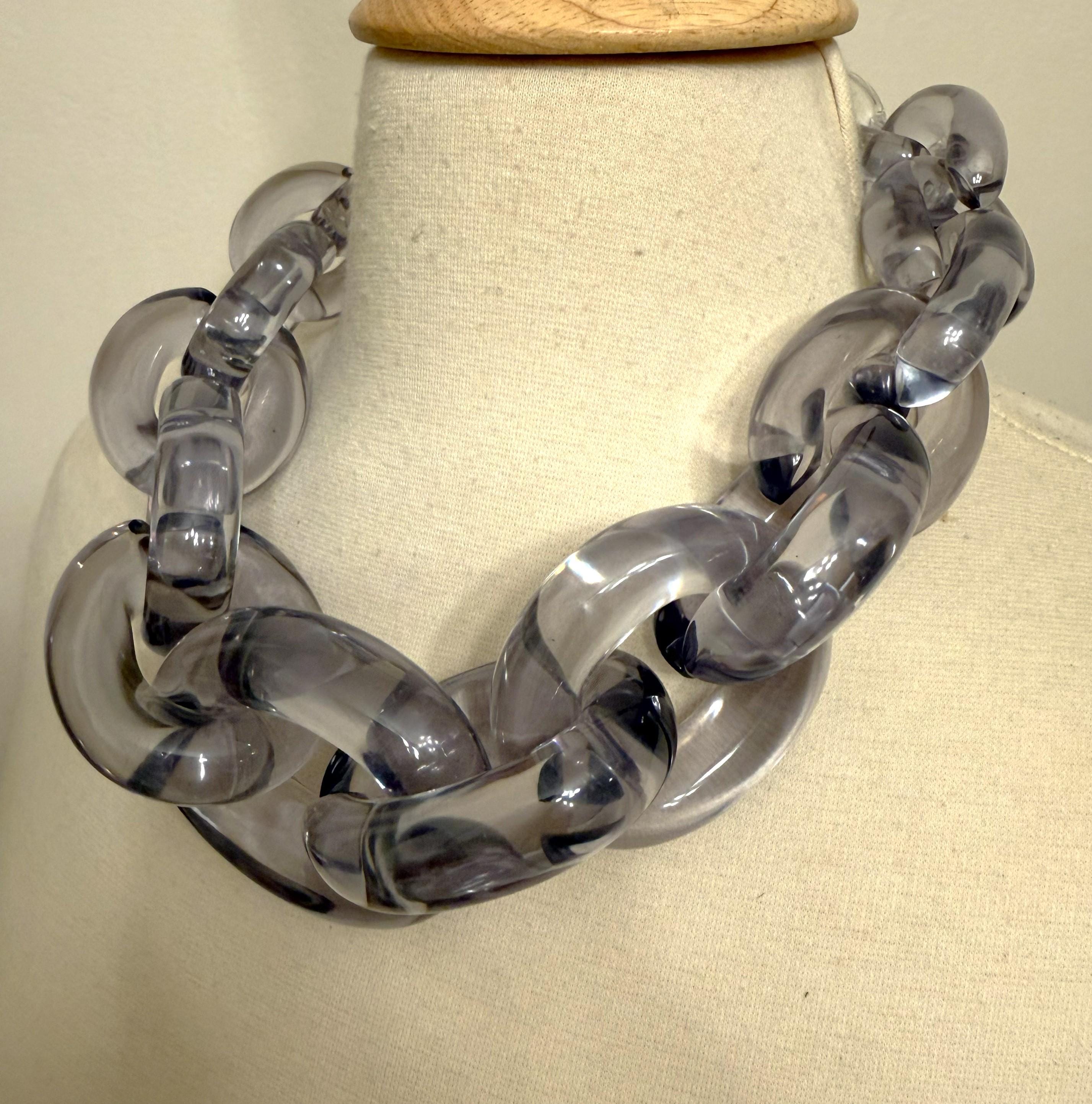 Fabulous Gerda Lynggaard Monies Clear Gray Acrylic Large Chain Statement Signed Necklace