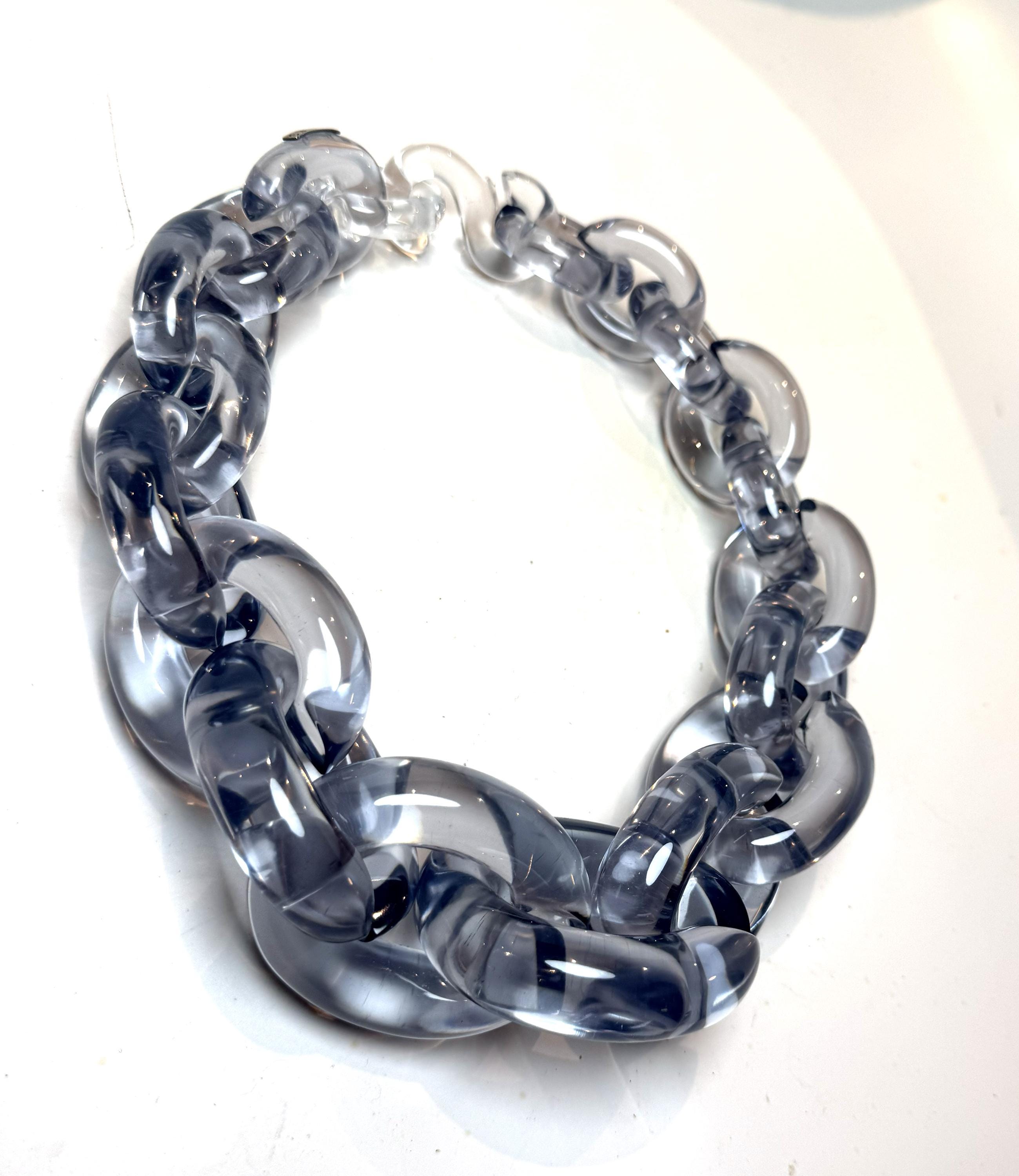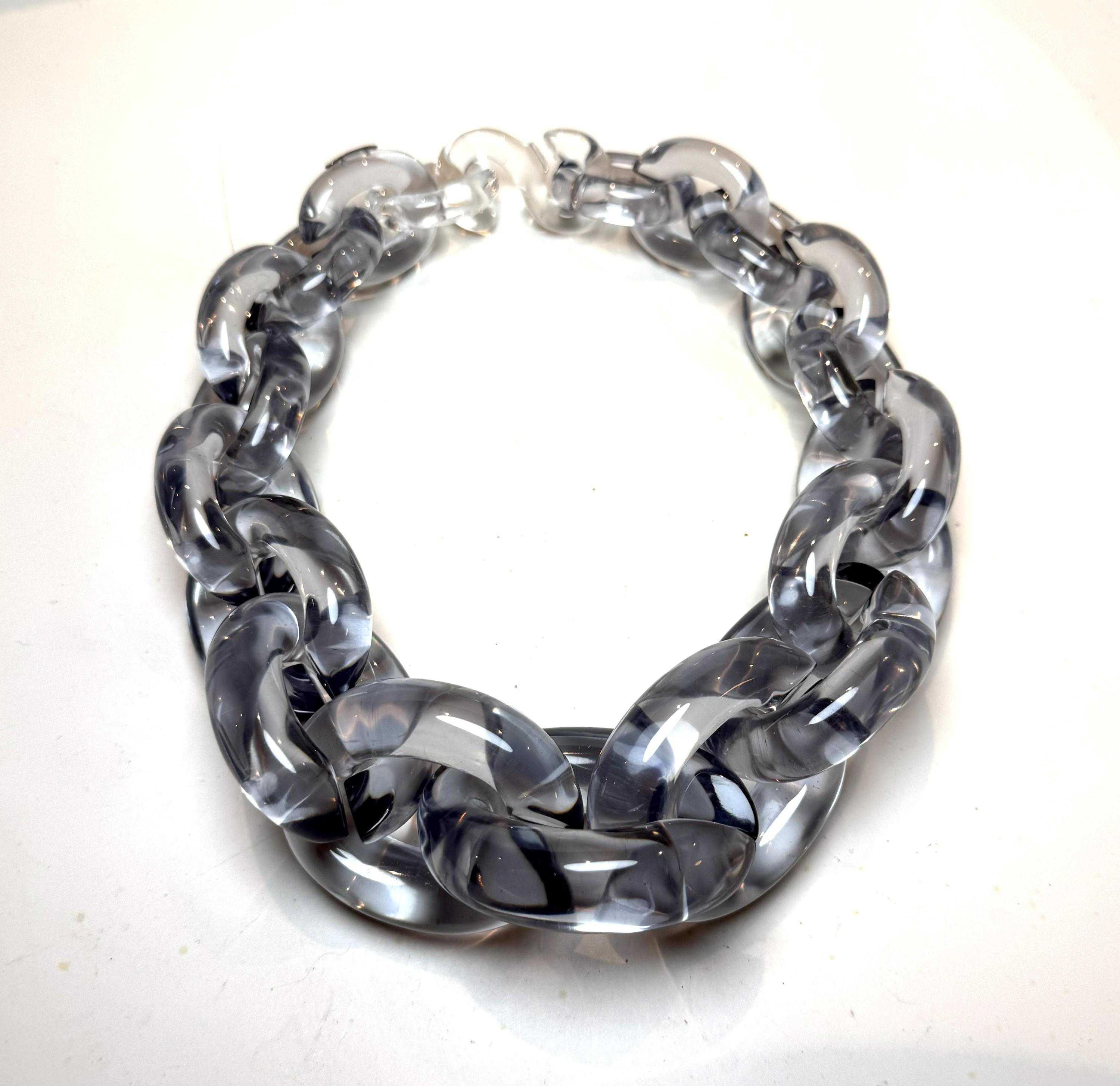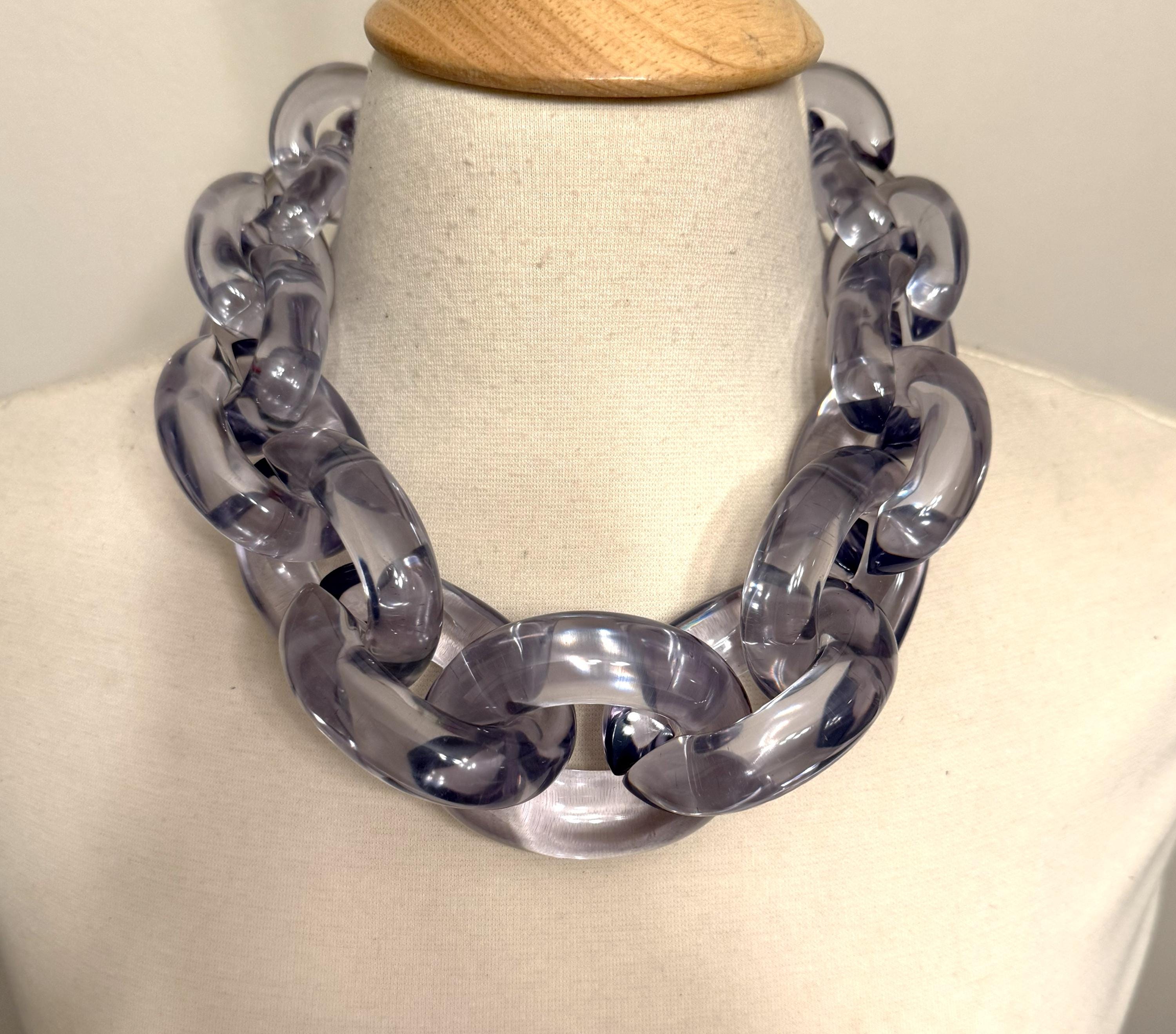 Fabulous Gerda Lynggaard Monies Clear Gray Acrylic Large Chain Statement Signed Necklace