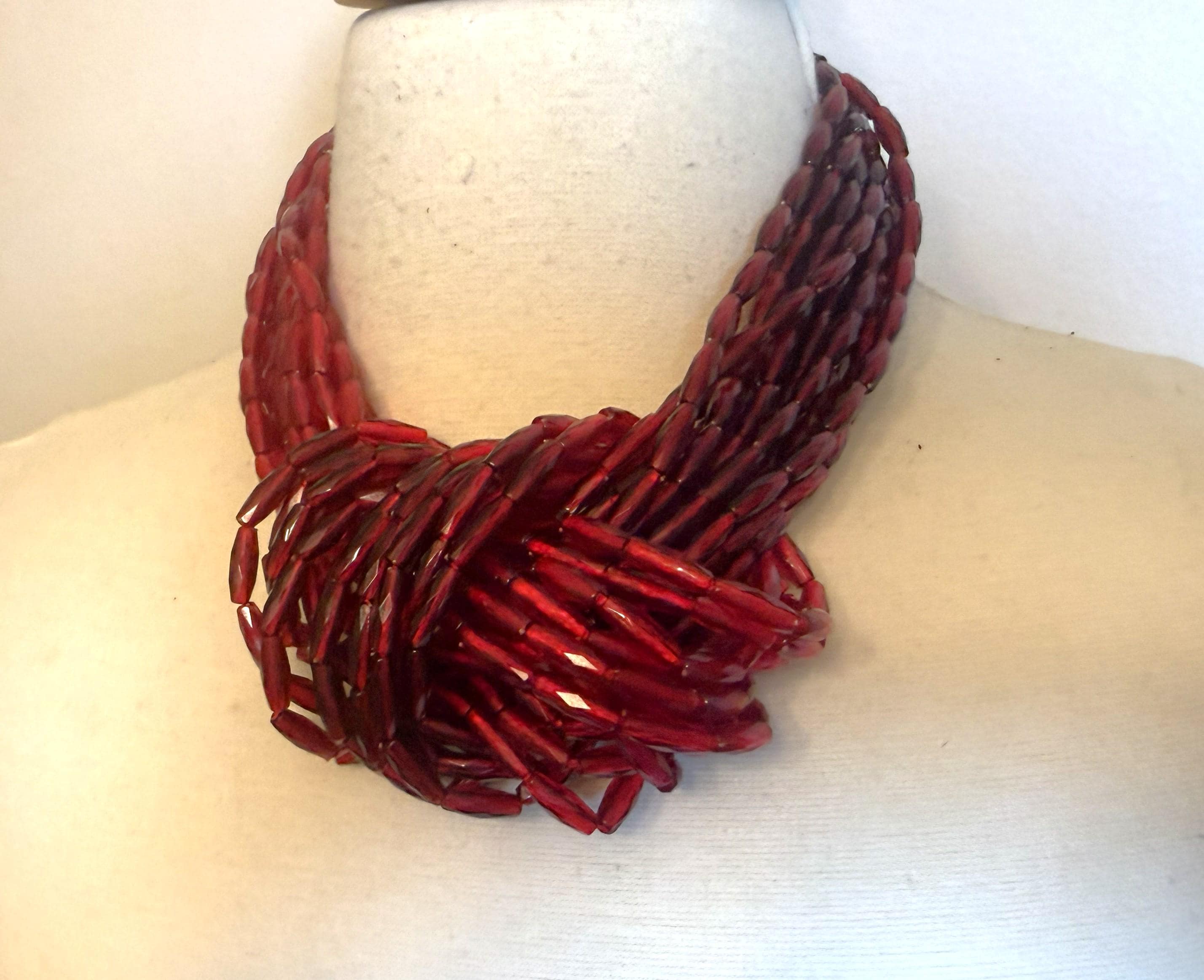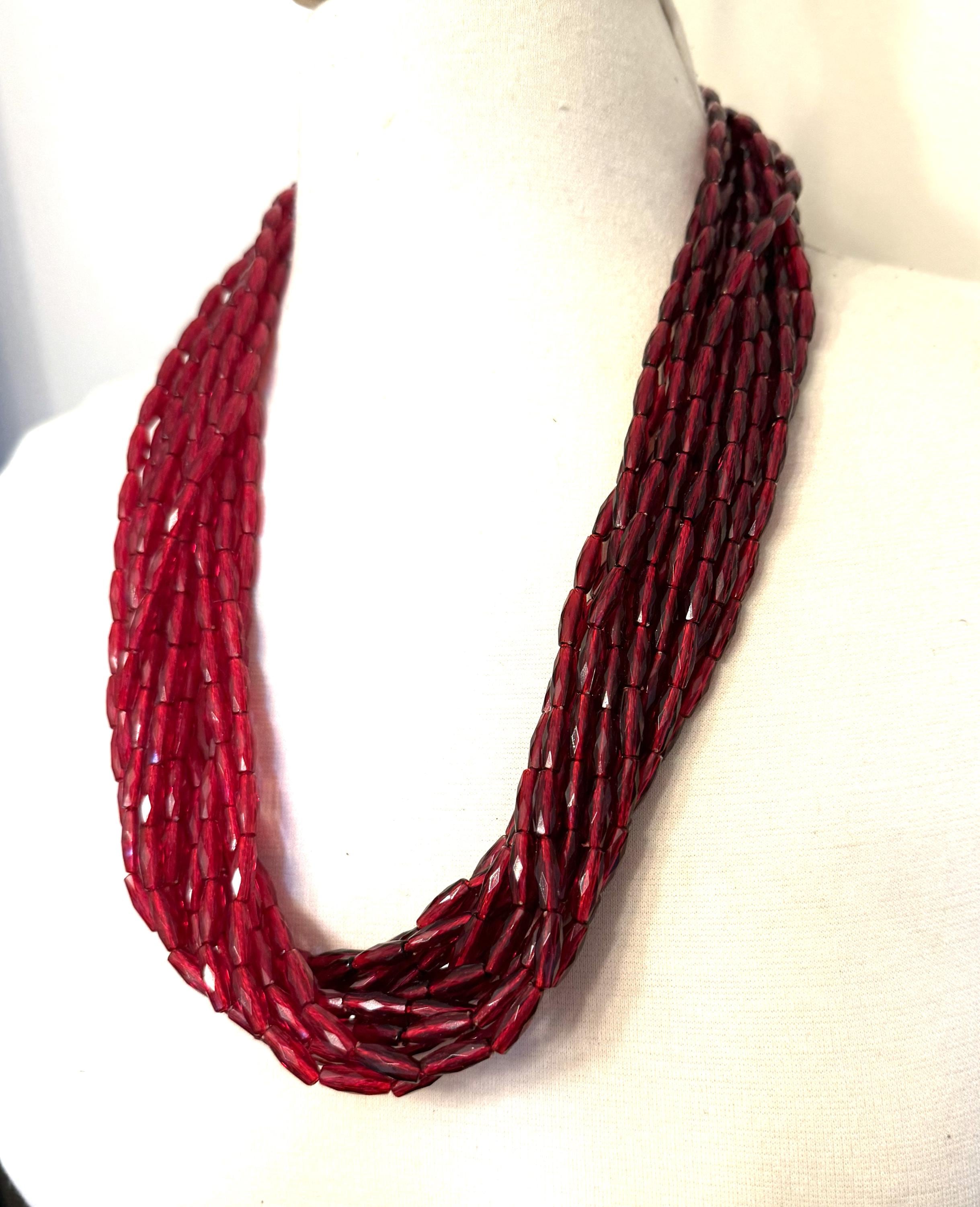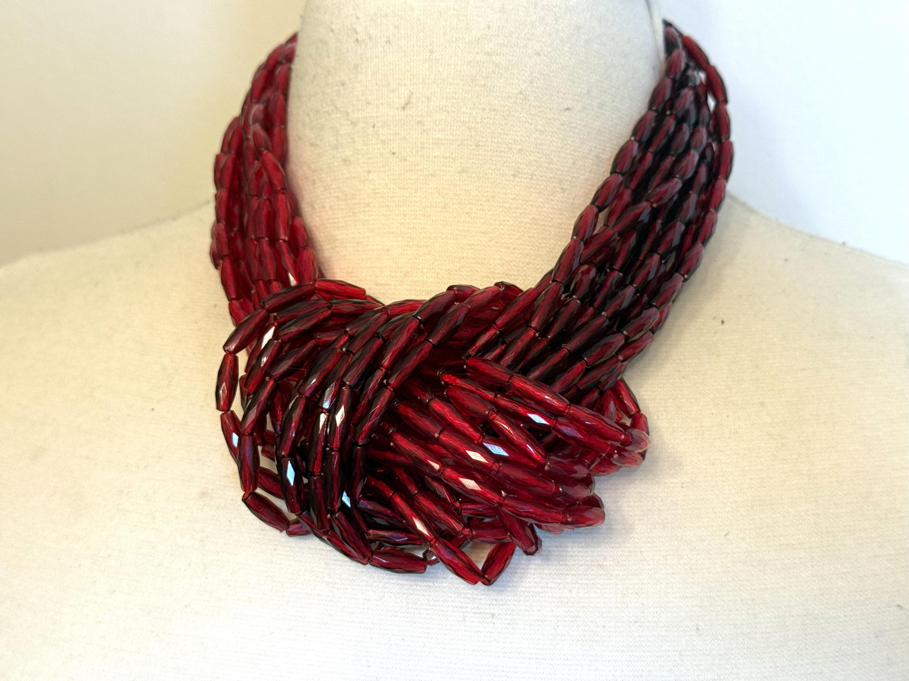 ANGELA CAPUTI Two Tones of Red Acrylic Beads Multi Strand Knott Necklace