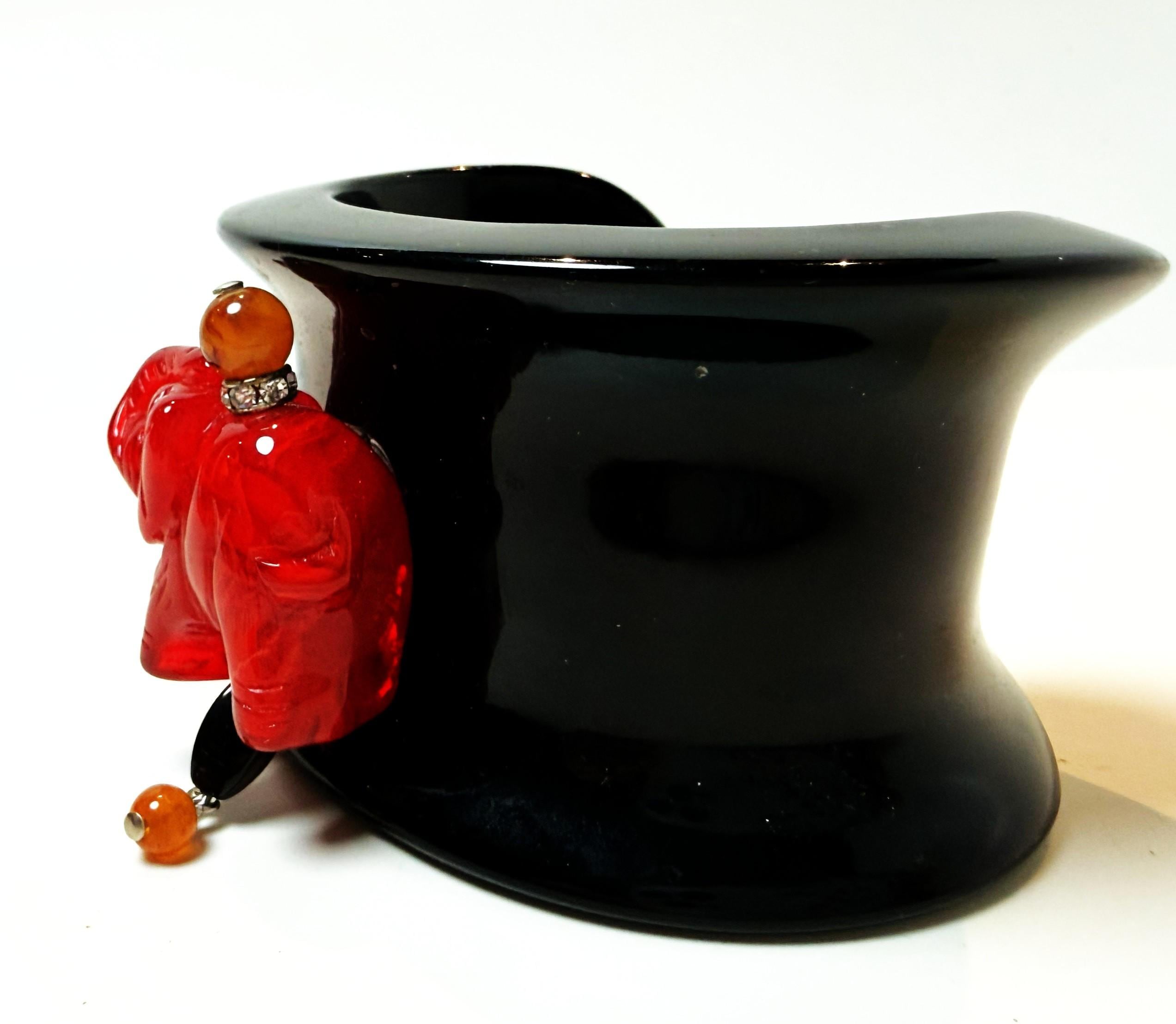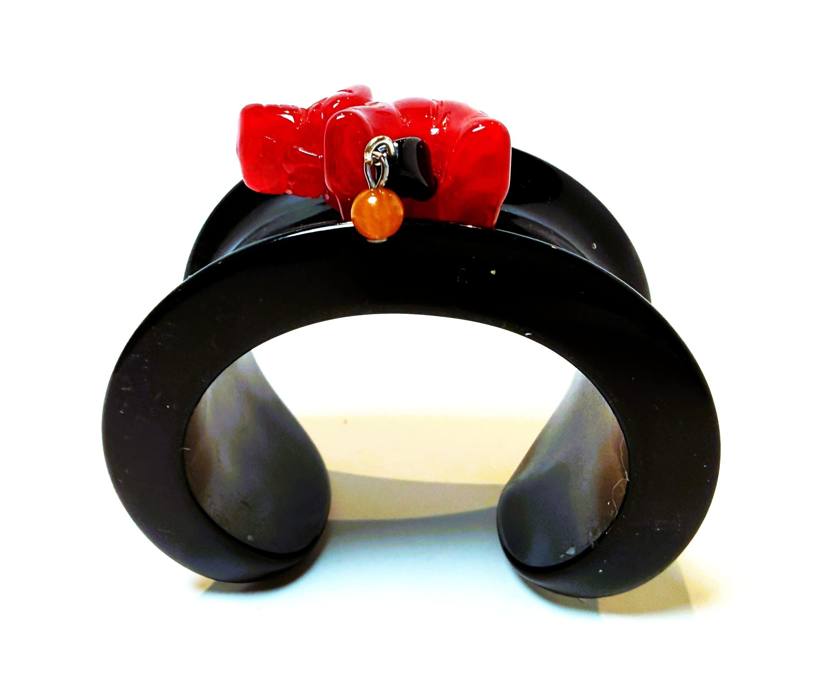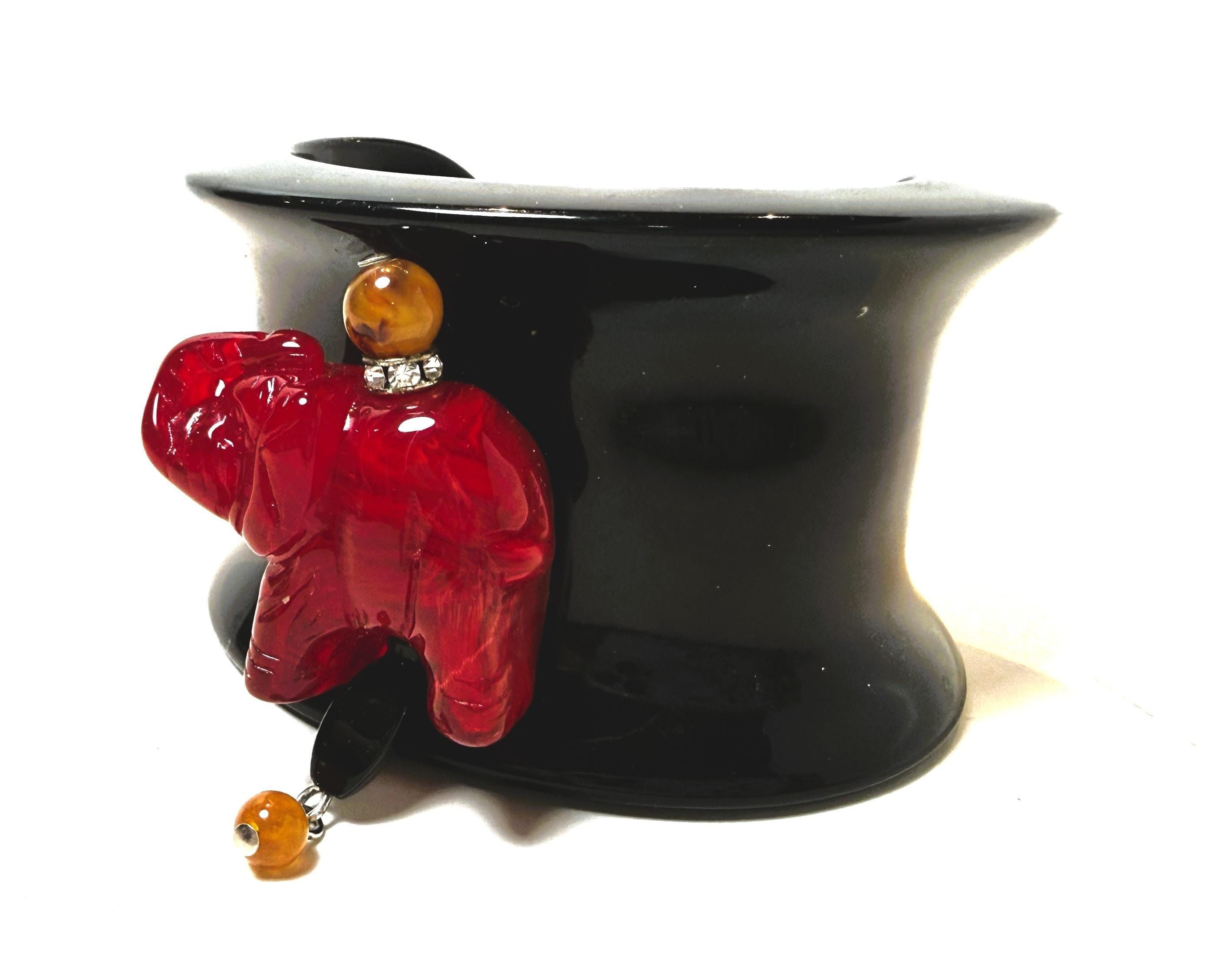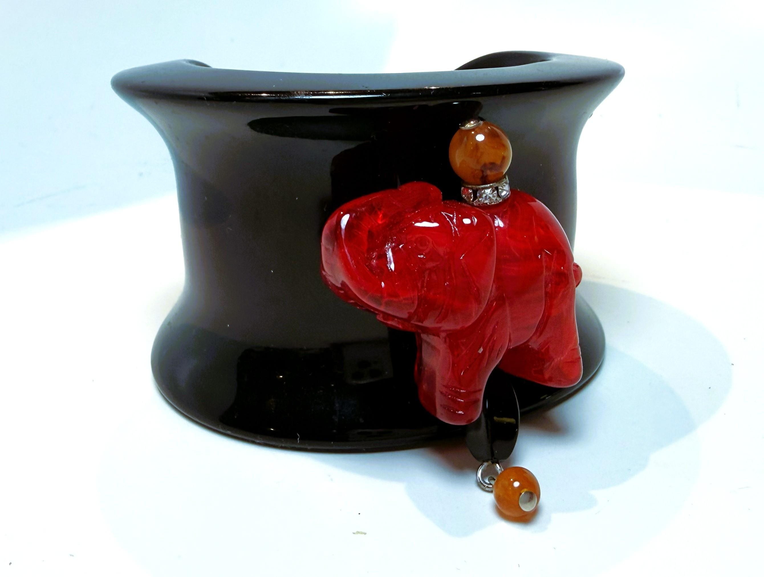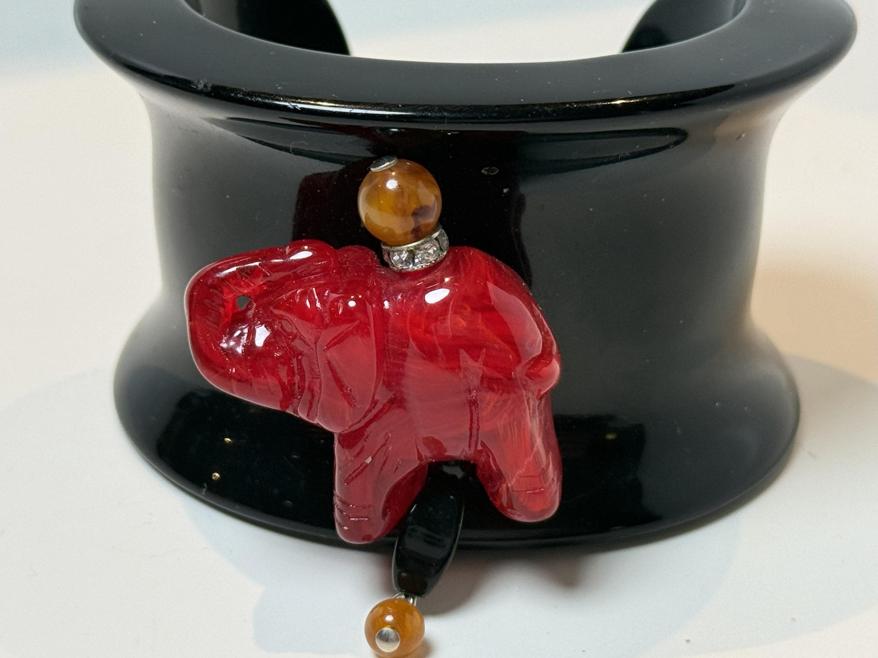 Gorgeous Angela Caputi Red Elephant, Black Resin Cuff Bracelet