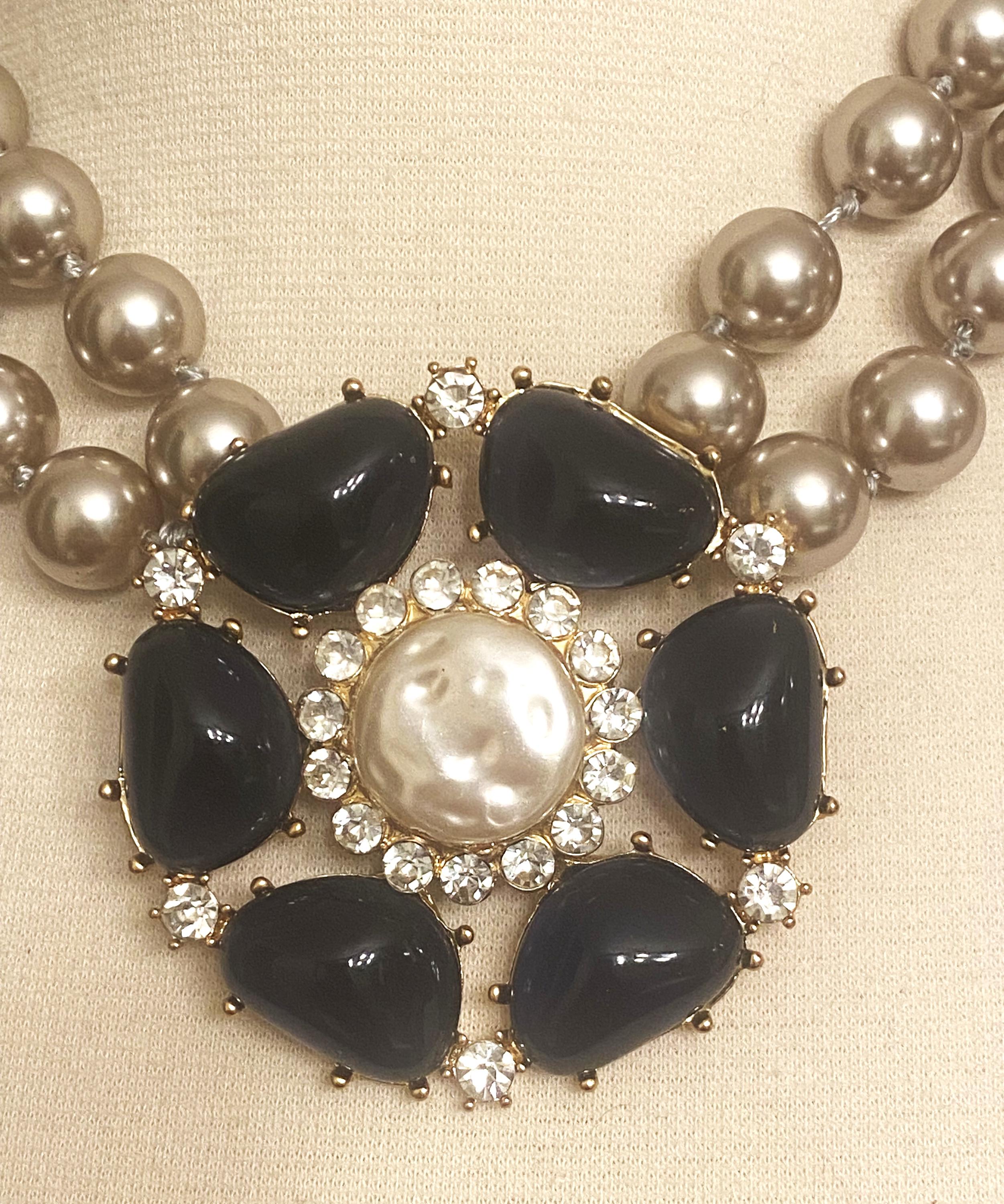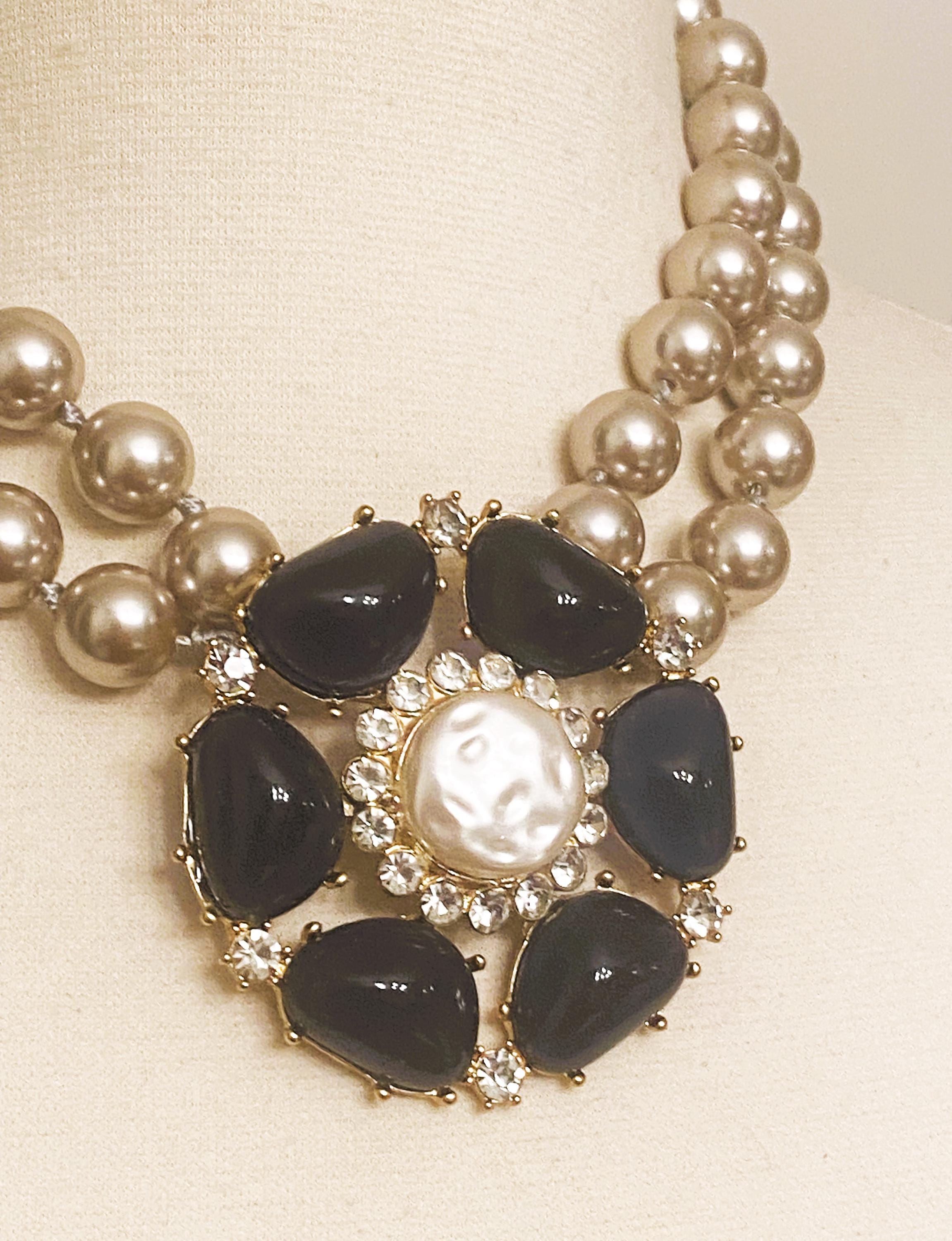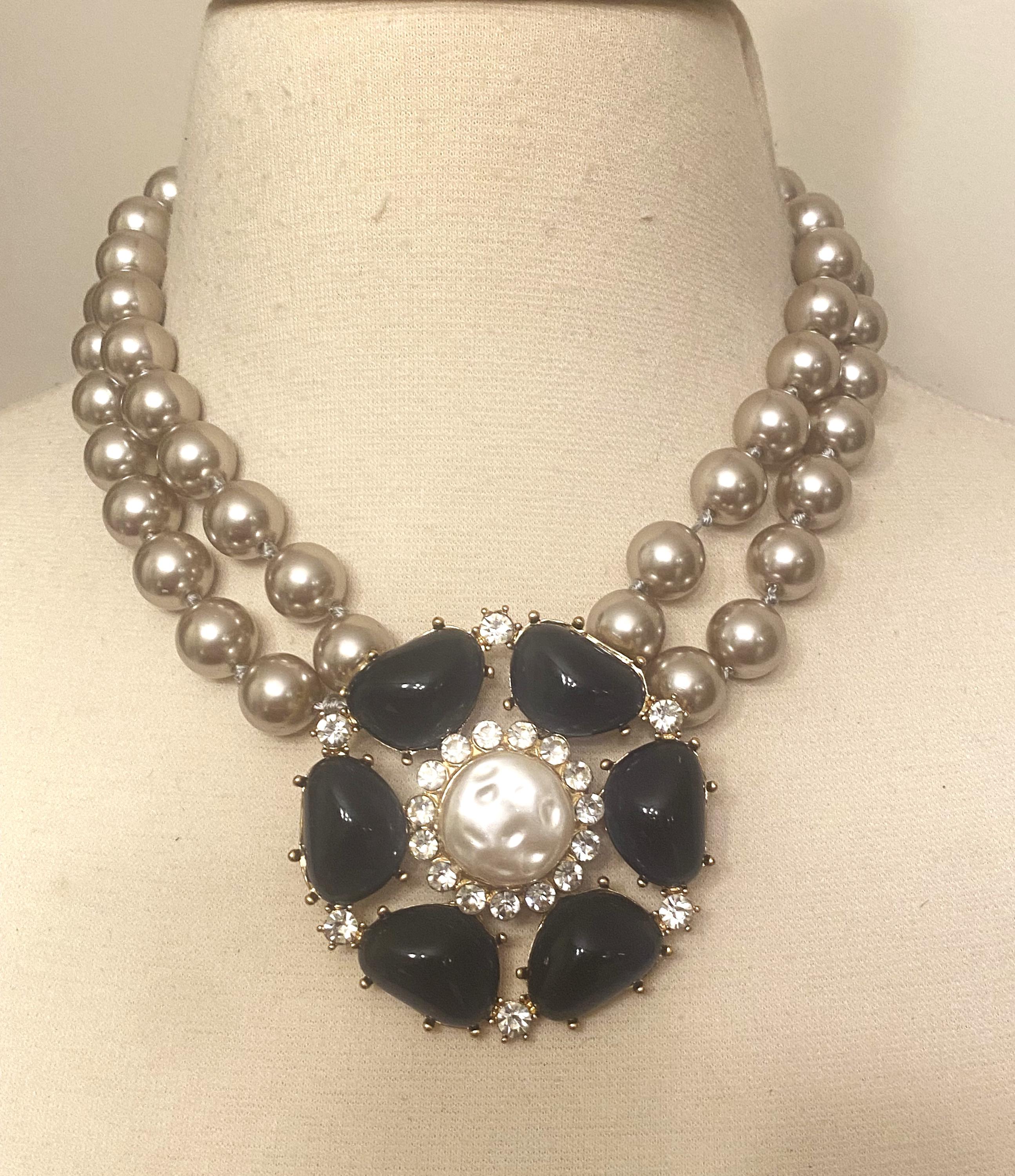 Beautiful Gray Faux Pearl & Blue Resin Two Strand Necklace