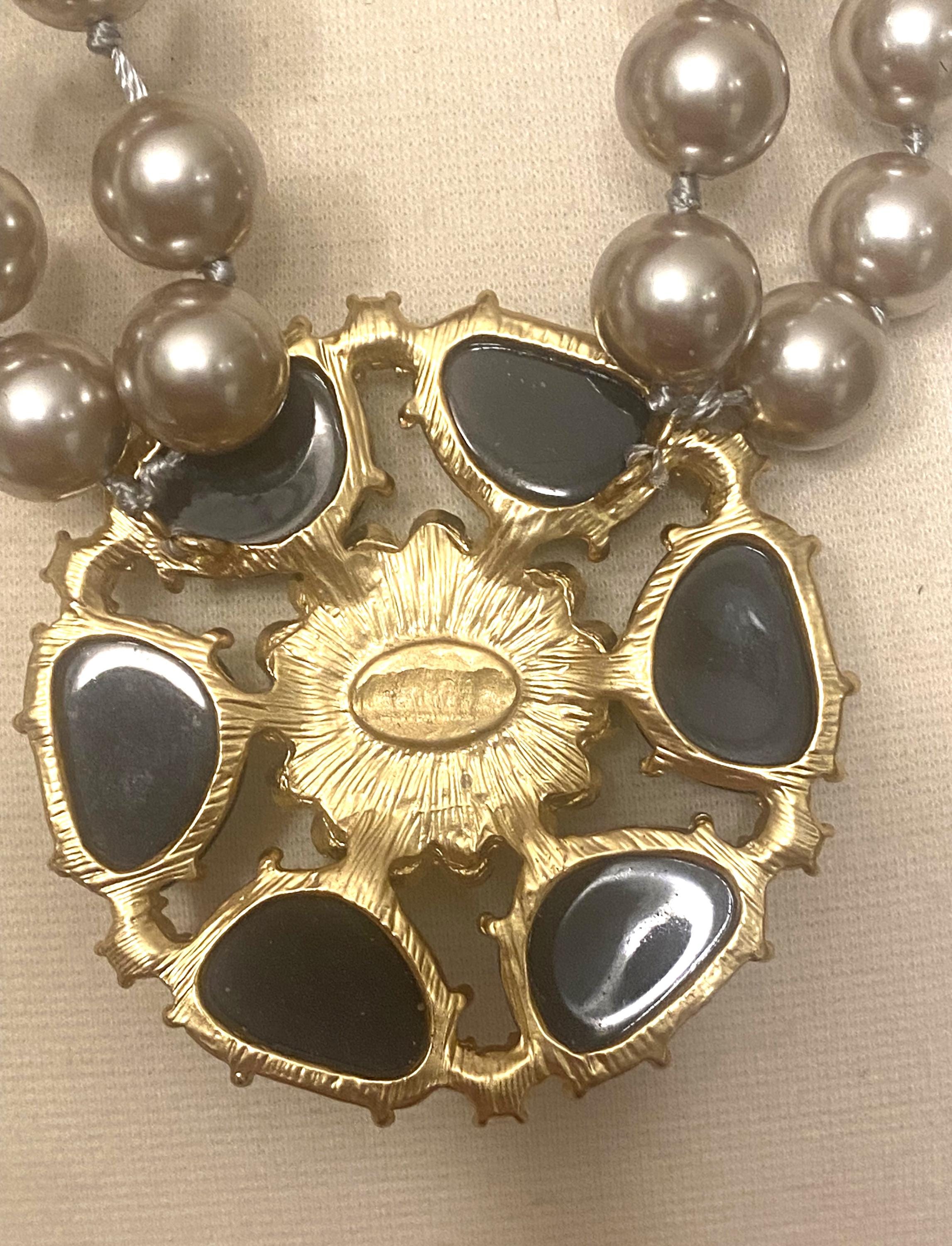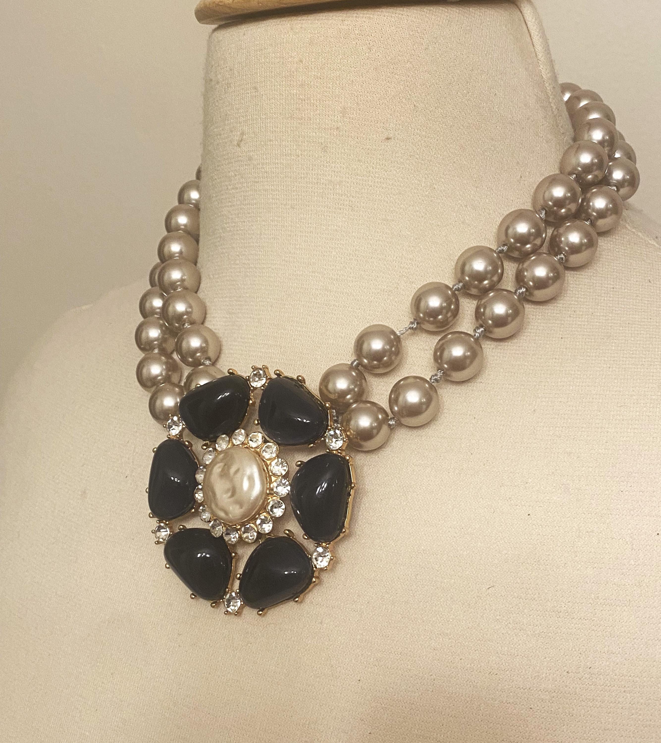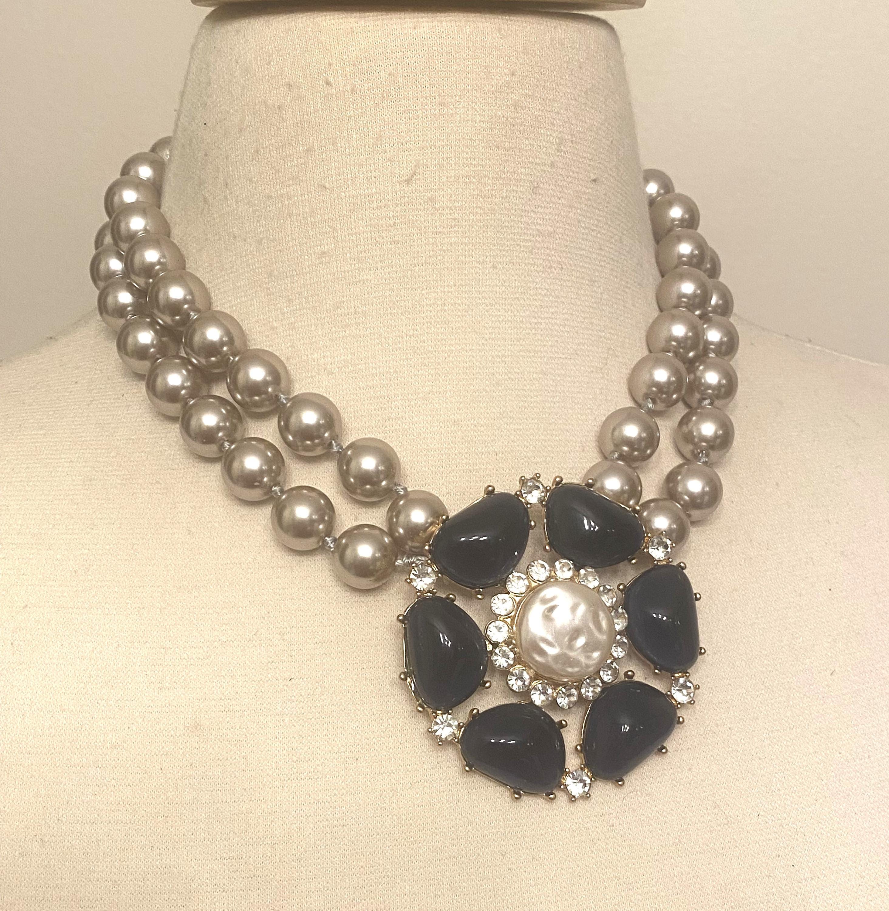 Beautiful Gray Faux Pearl & Blue Resin Two Strand Necklace