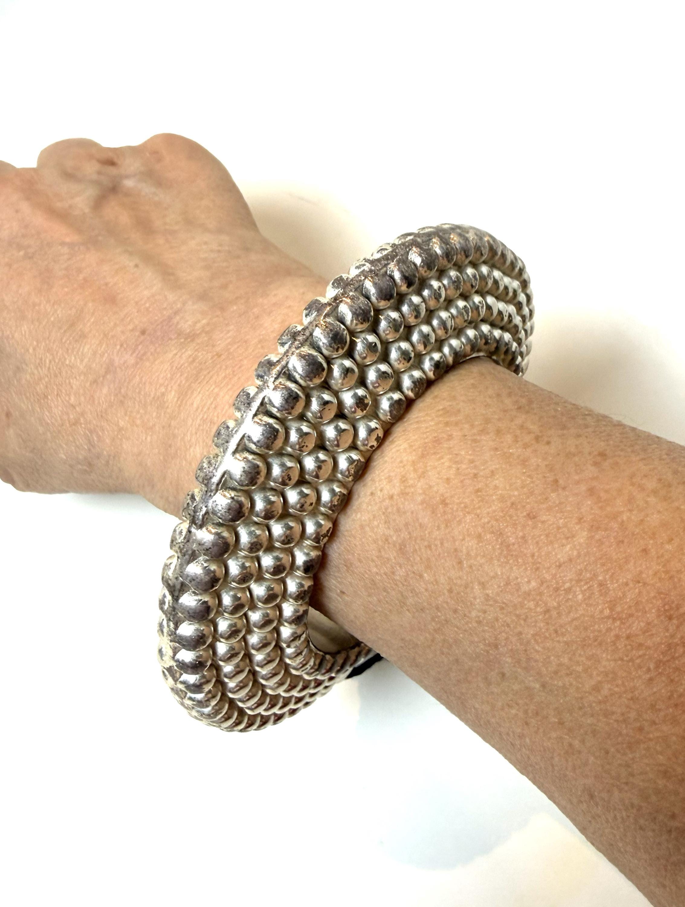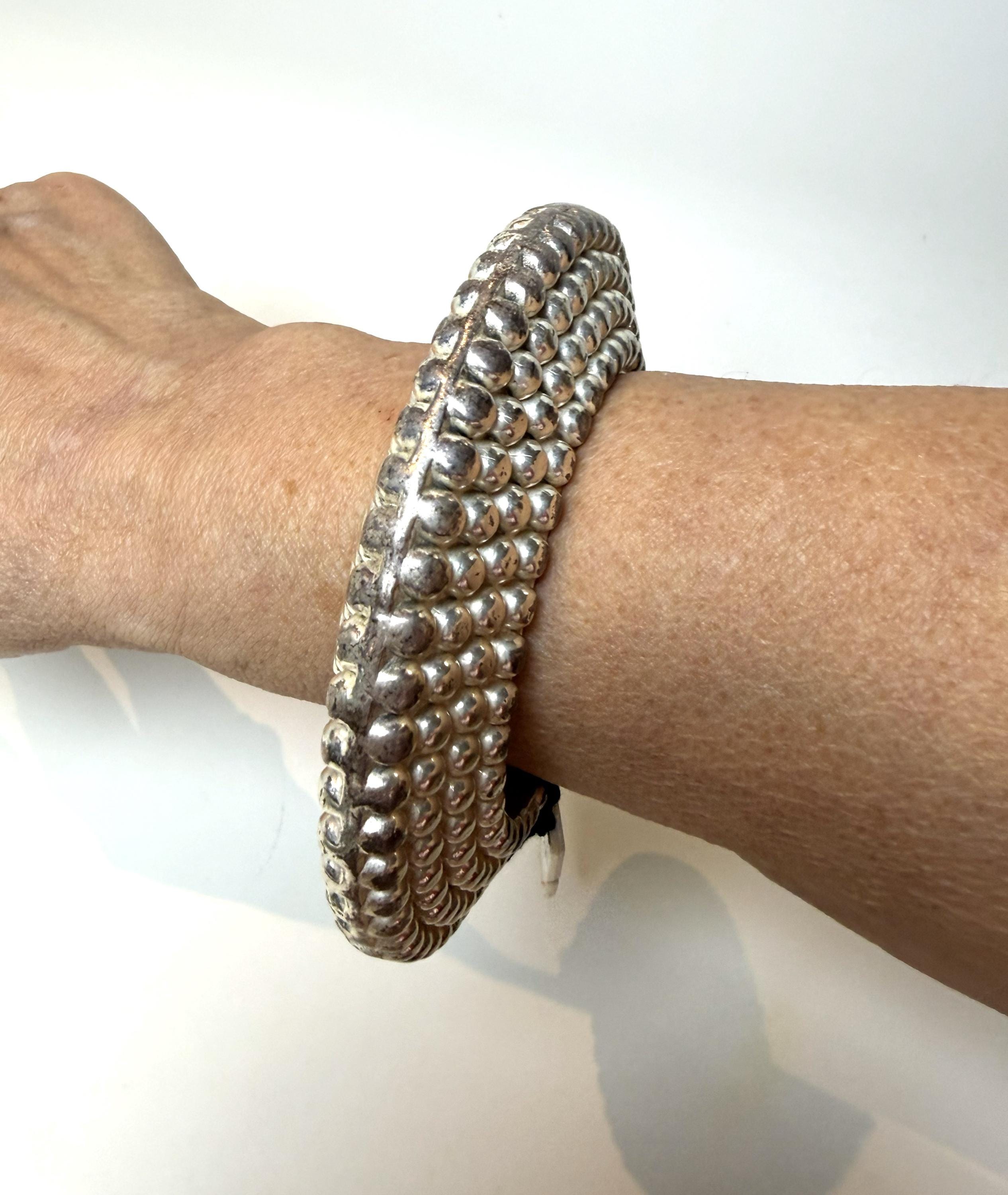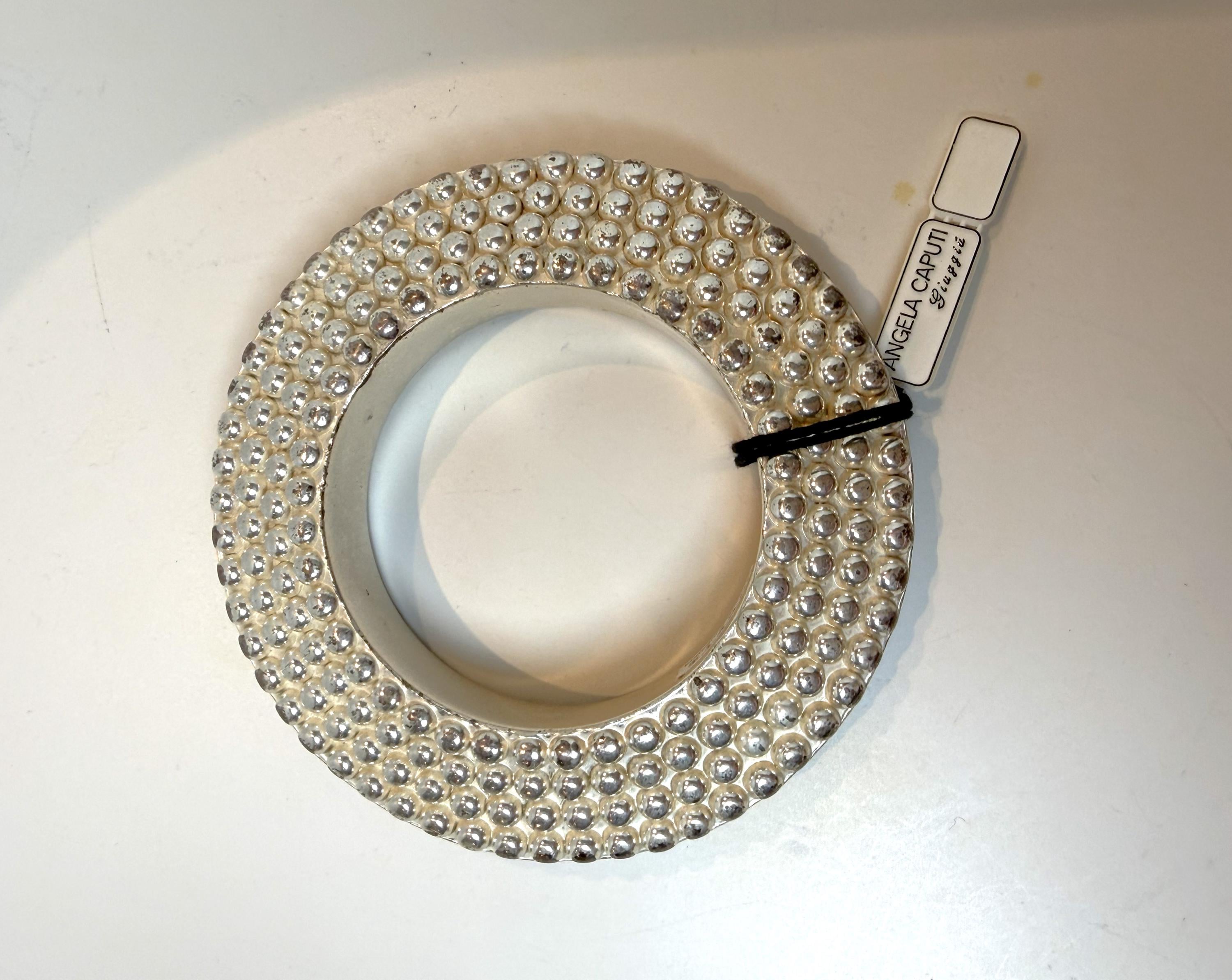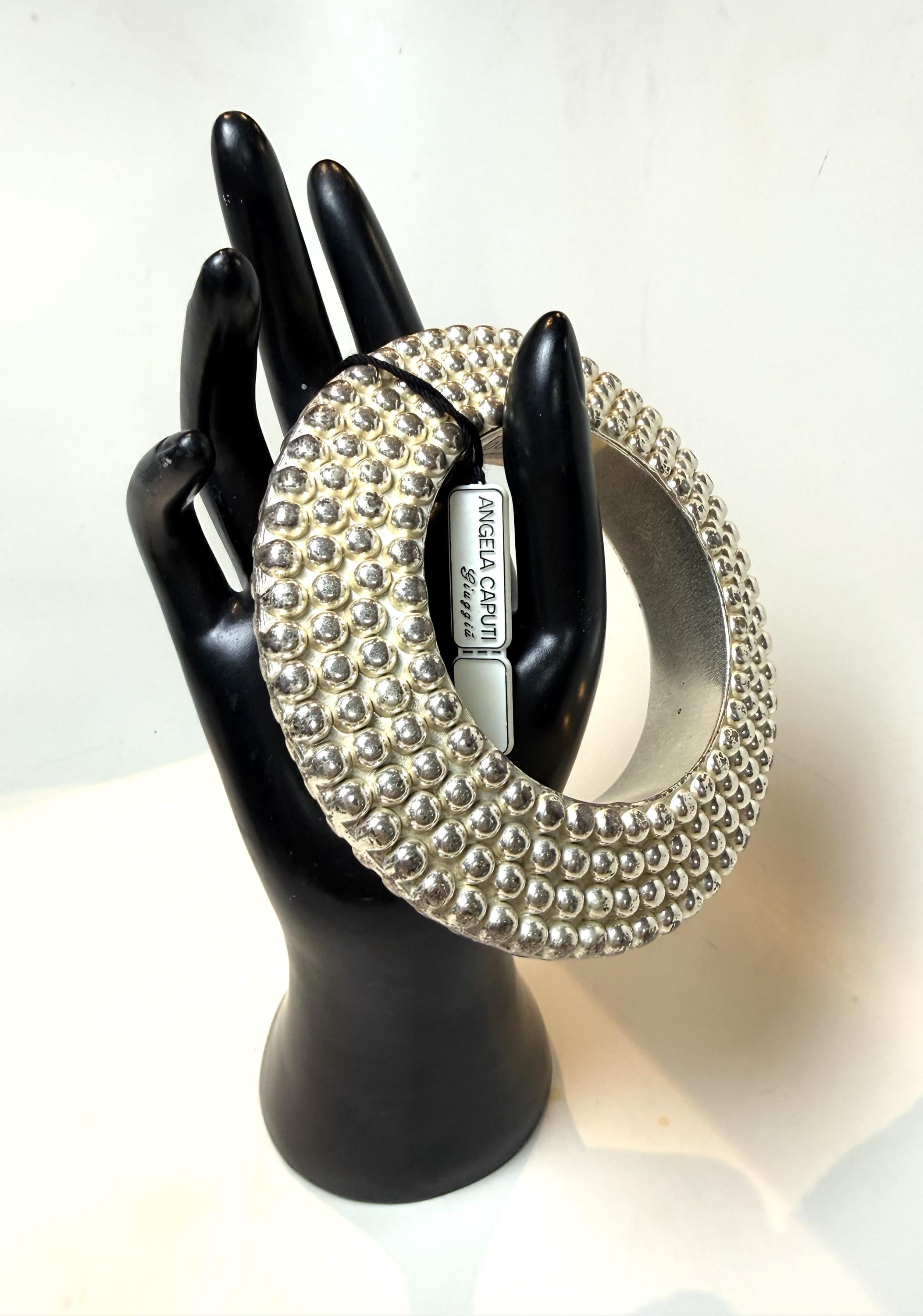 Gorgeous Angela Caputi Distressed Silver Tone Metal Bangle Bracelet, A bold design for a contemporary piece.