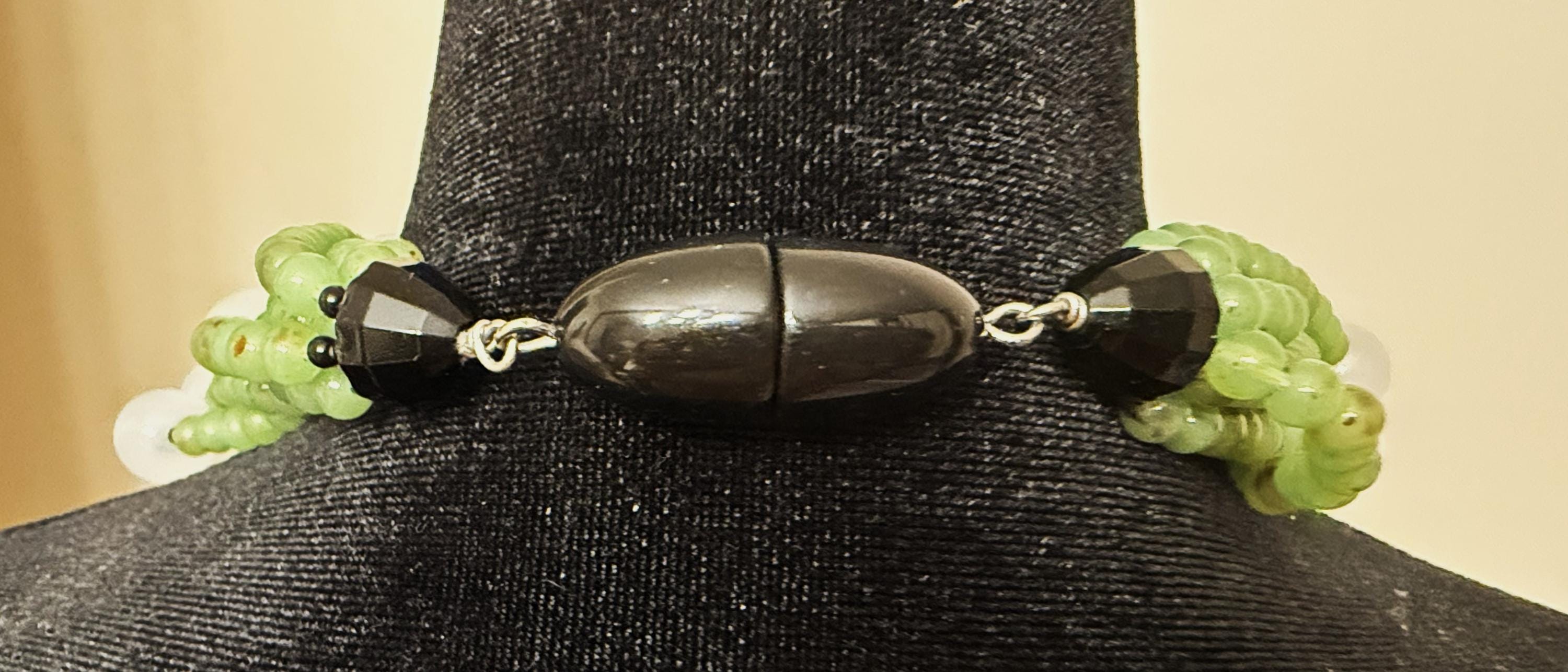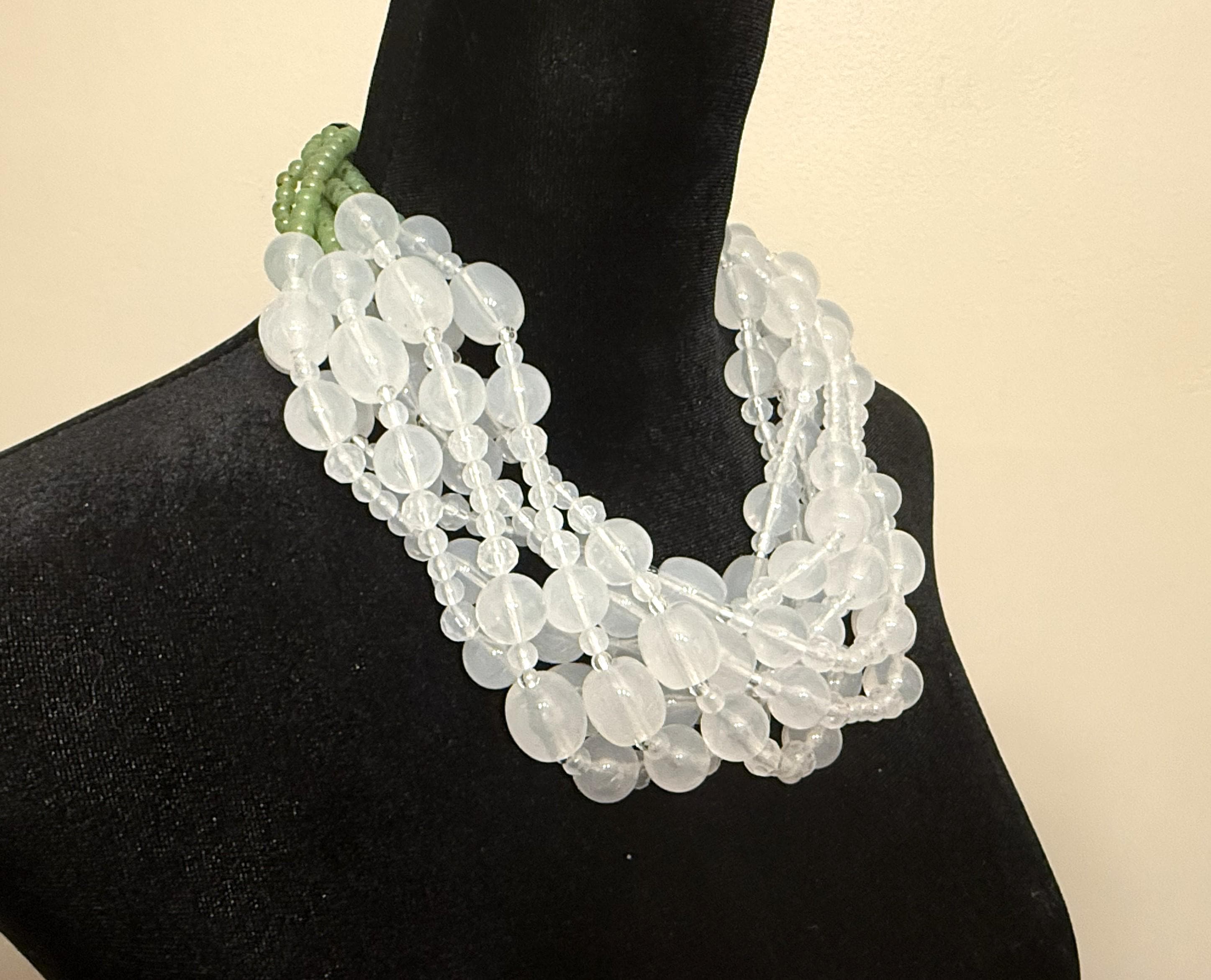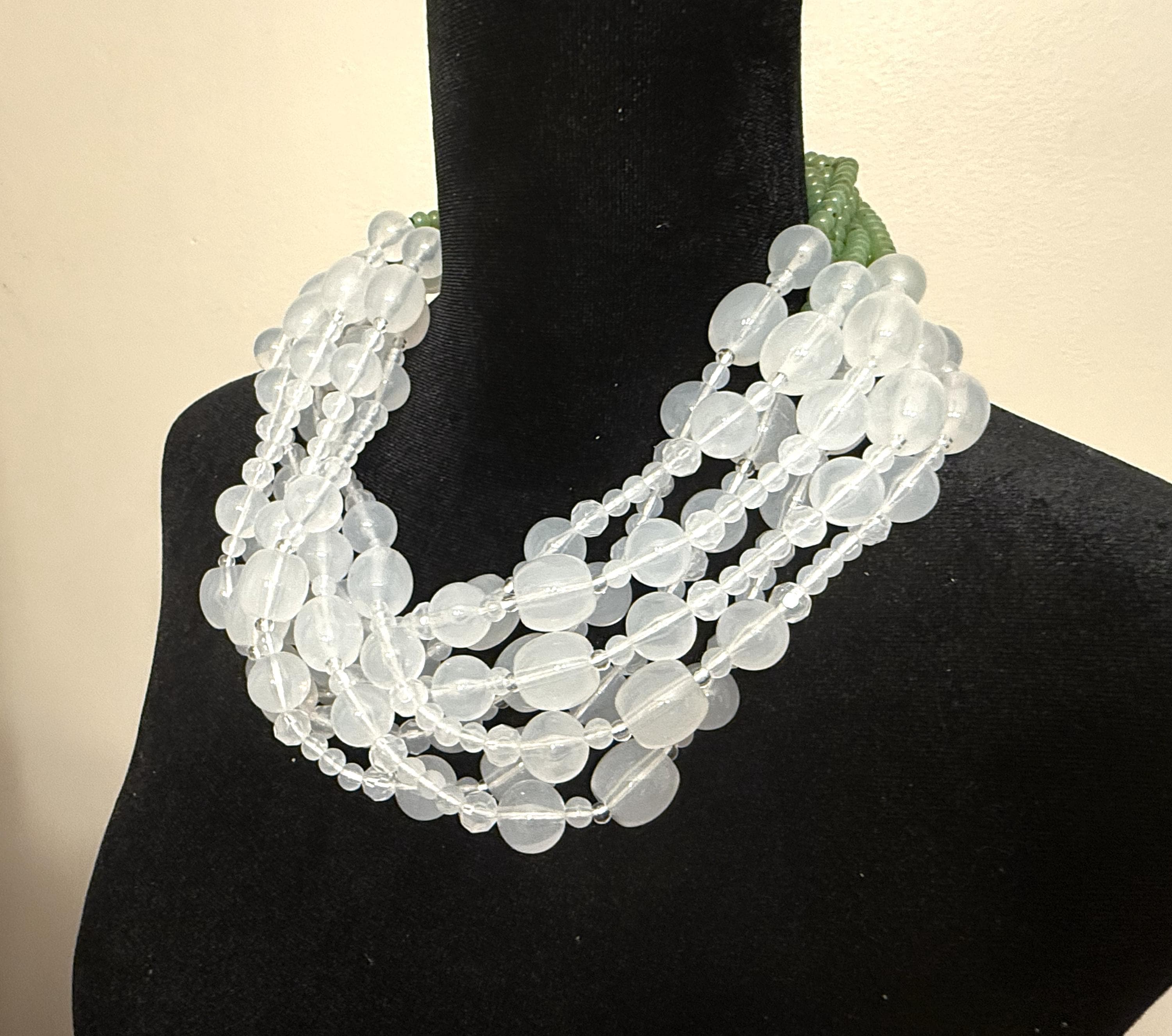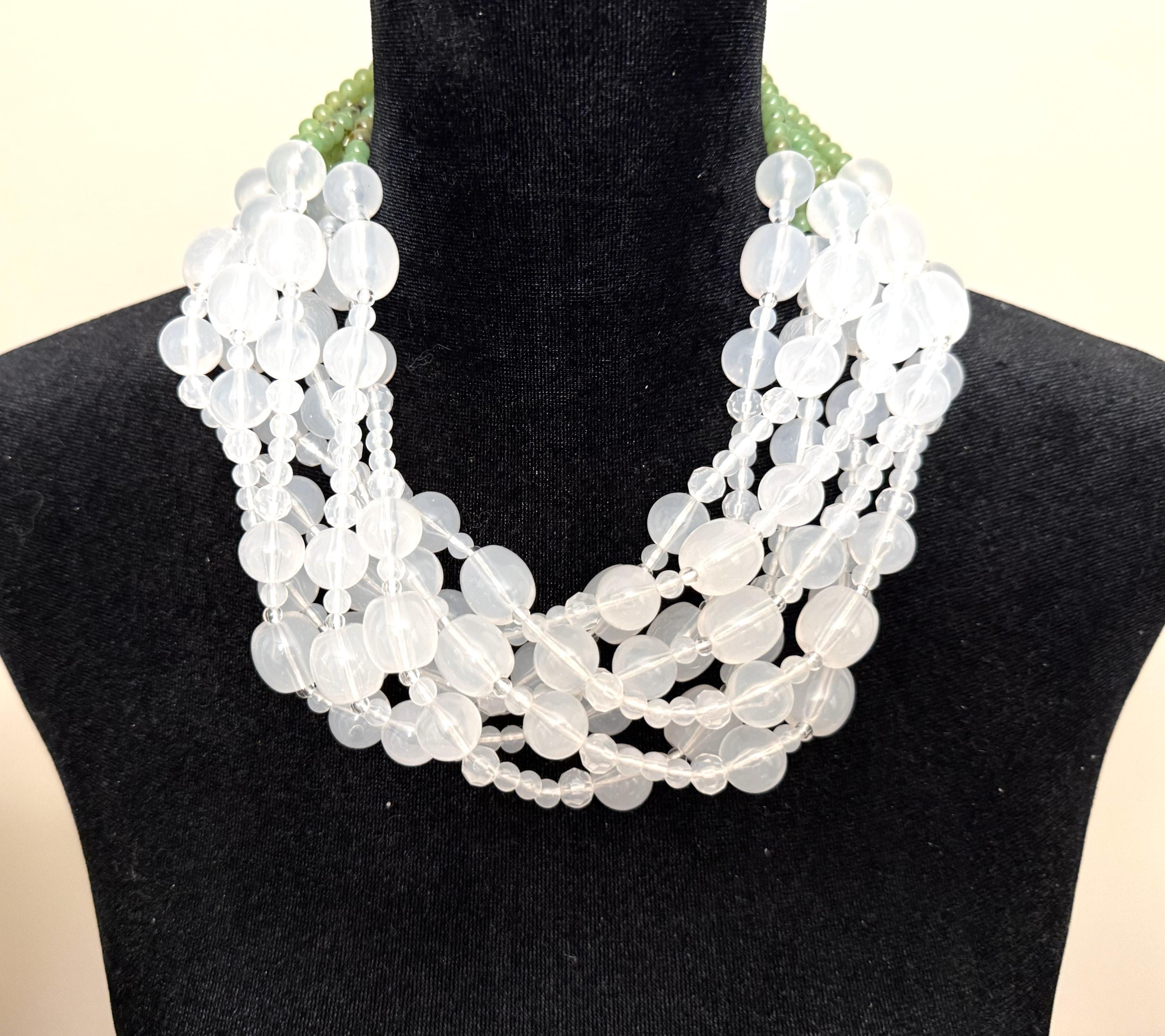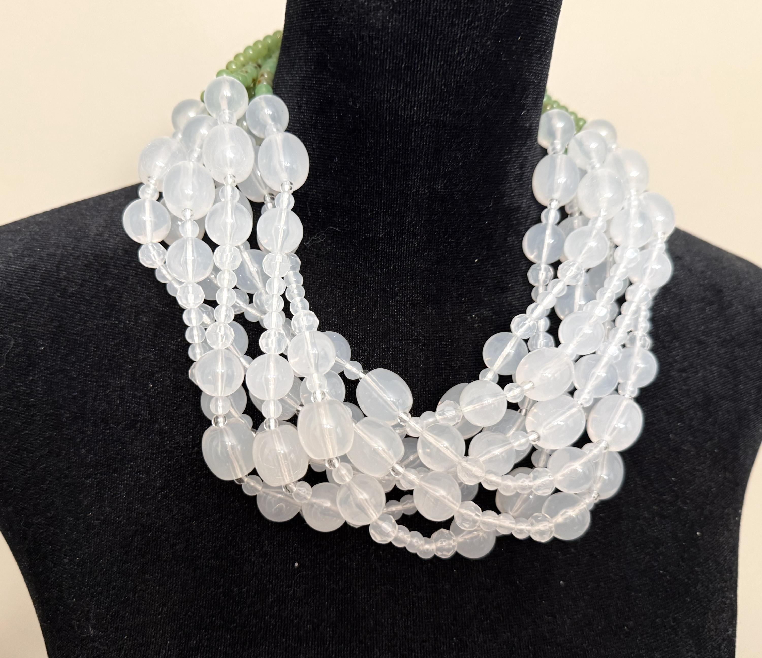 Angela Caputi White Color & Green Resin Multi Strand Necklace