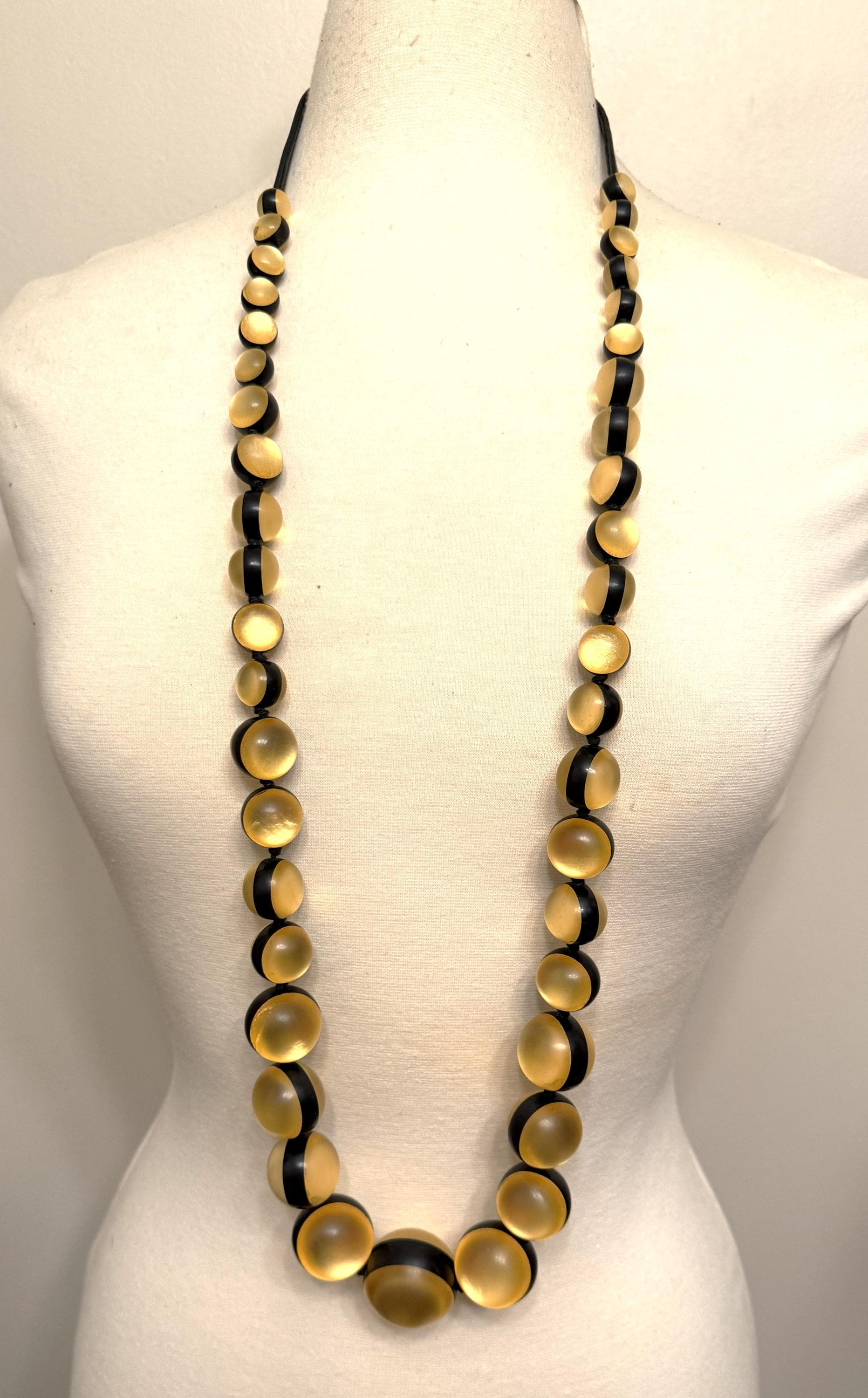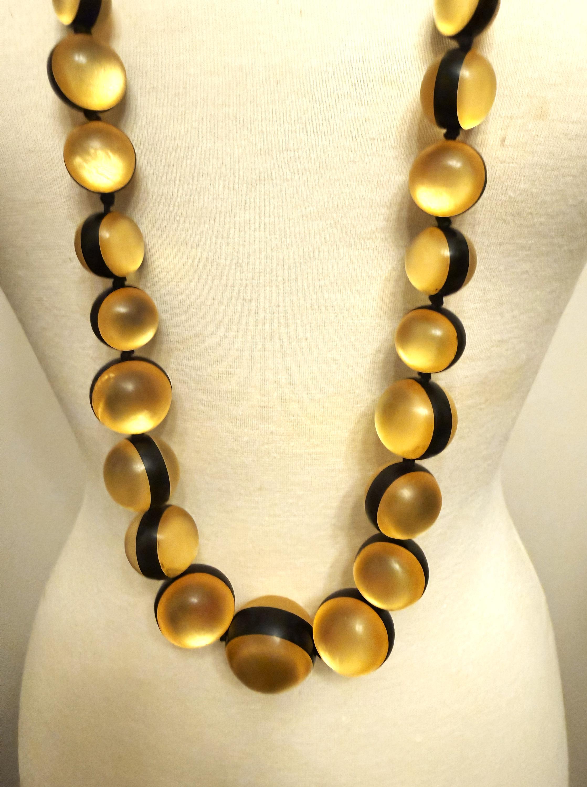 Gerda Lynggaard Monies Gold Foil Acrylic Graduated Beads Statement Long Necklace