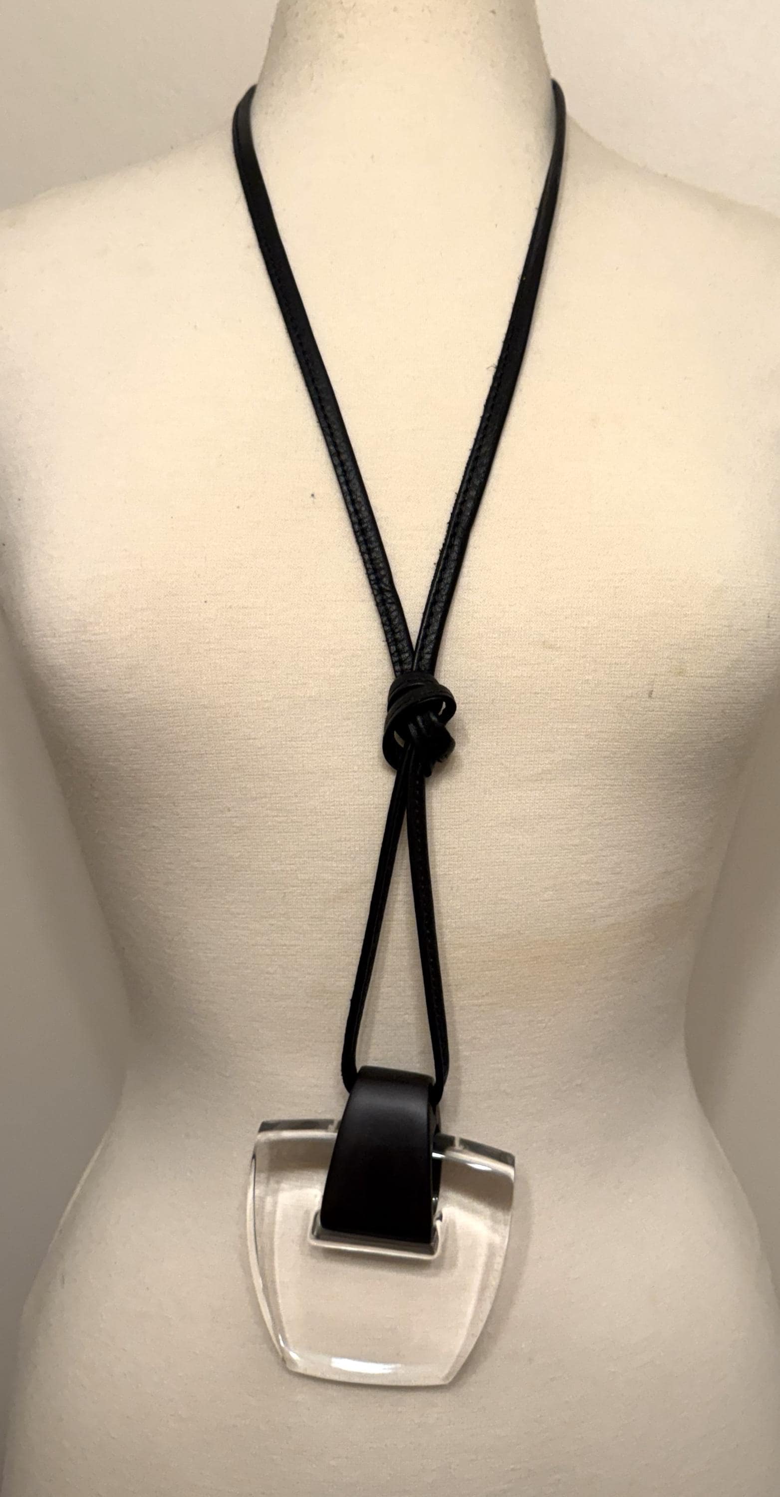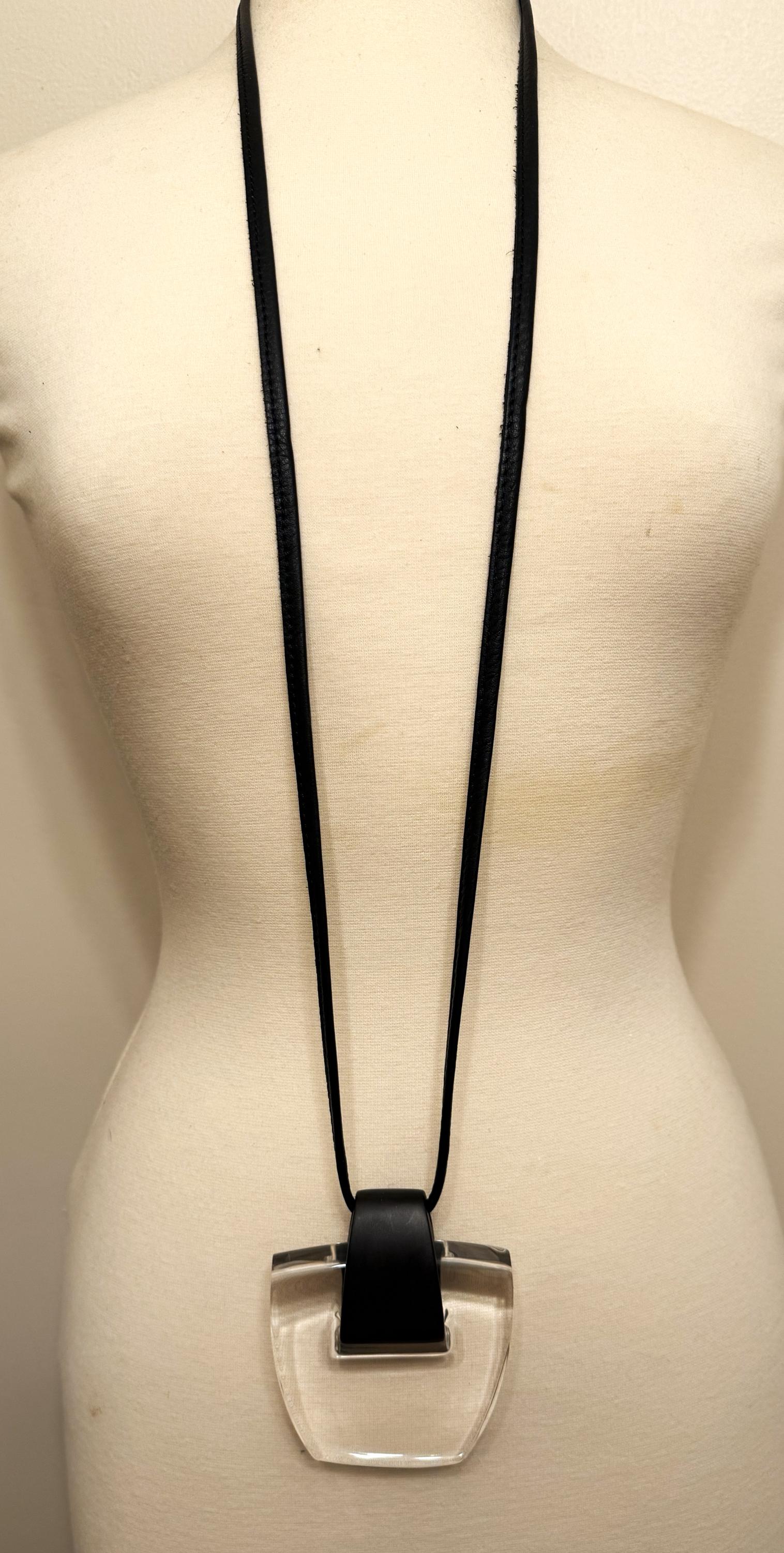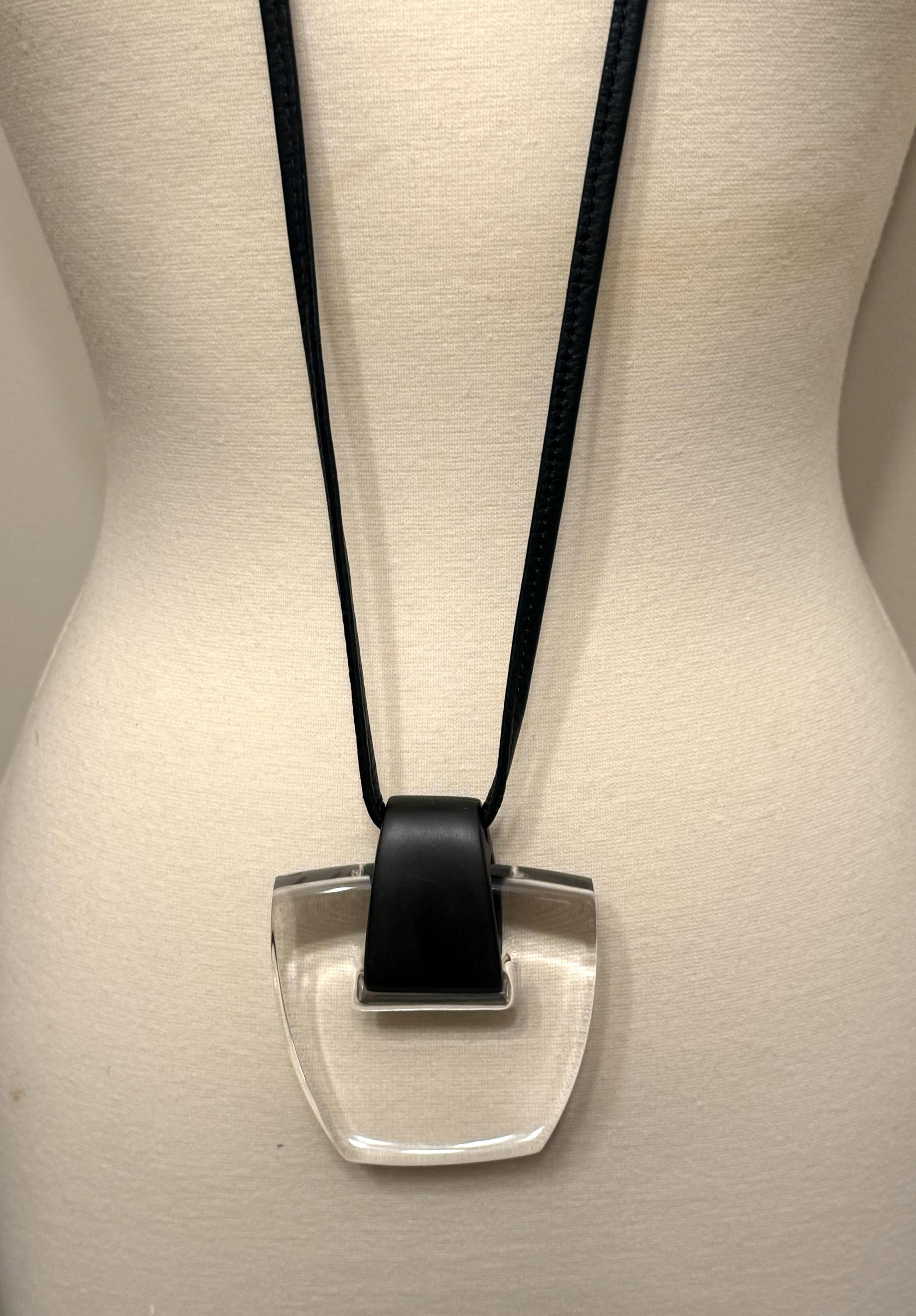 Gerda Lynggaard Monies Leather, Ebony Wood & Clear Acrylic Pendant Necklace