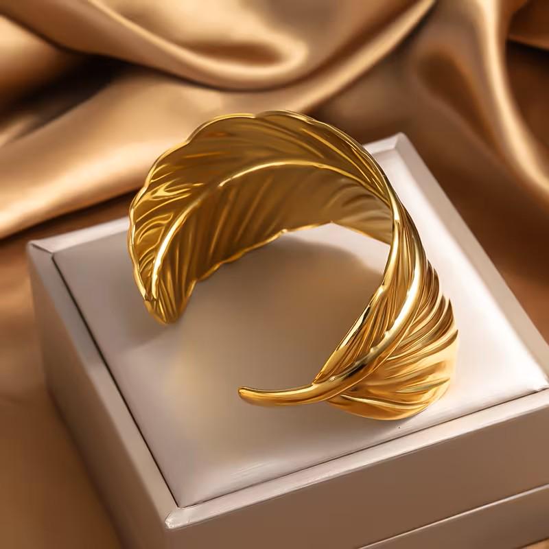 Gorgeous Gold Tone Brass Leaf Cuff Bracelet, it measure 2" wide.
