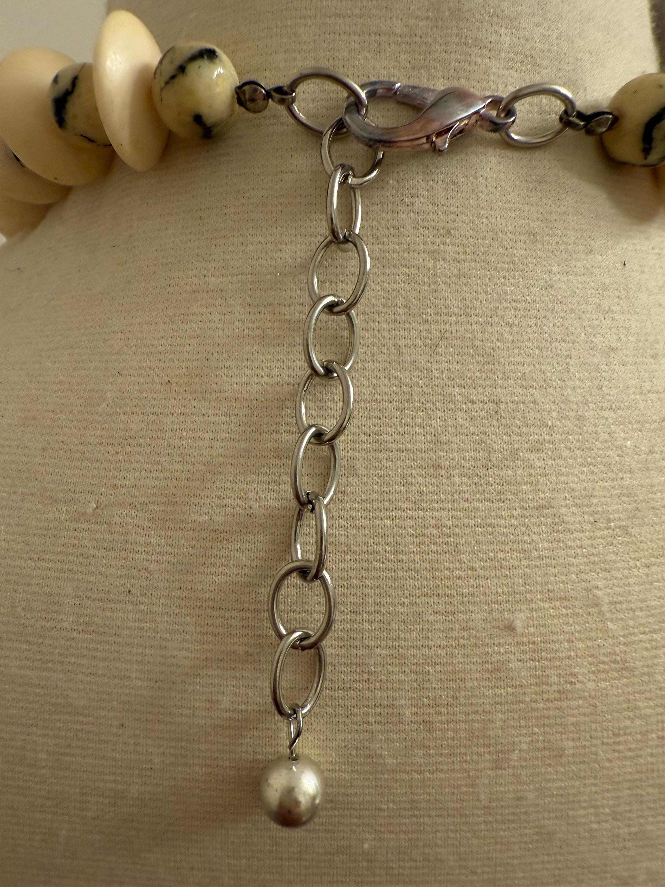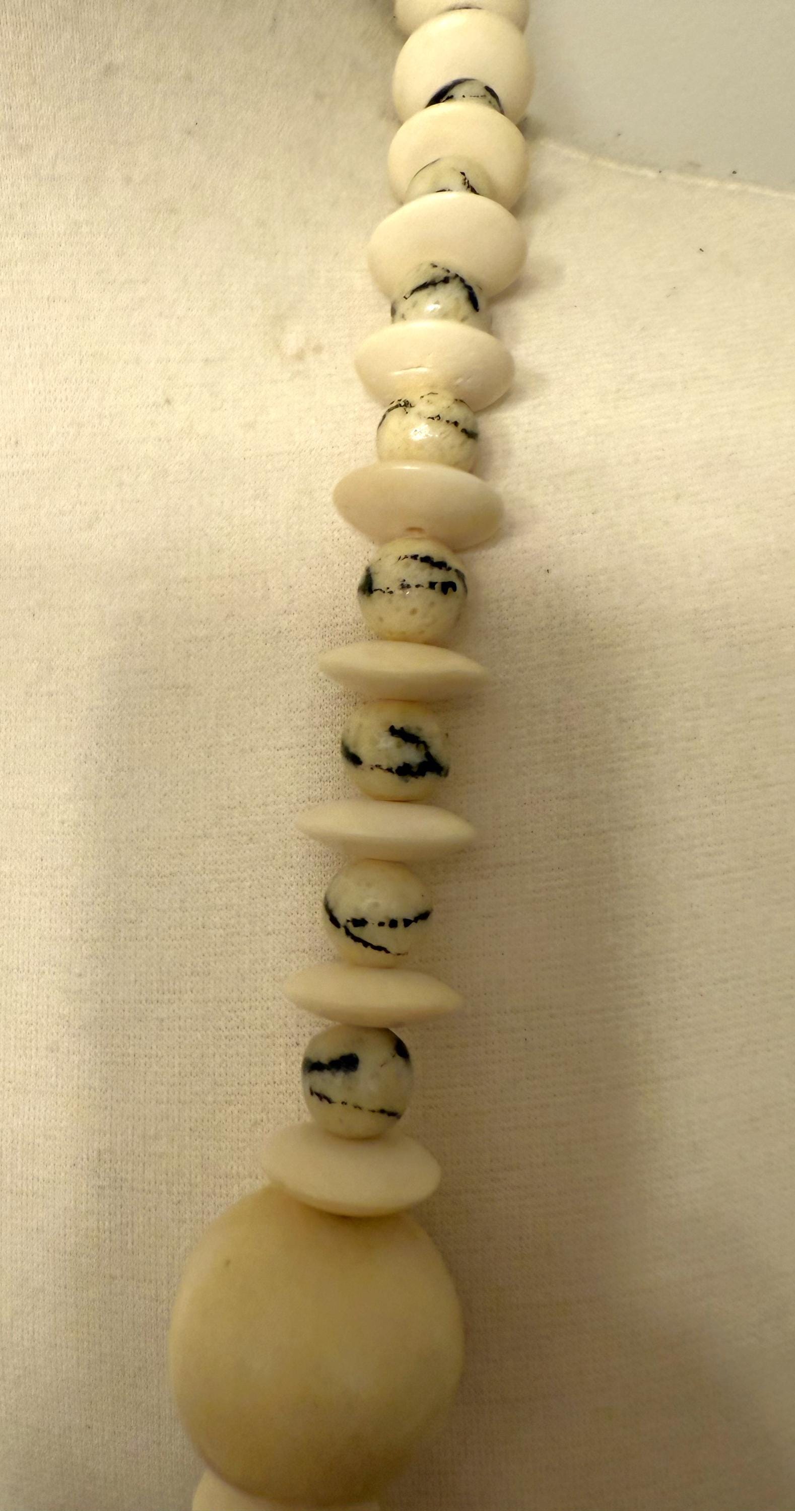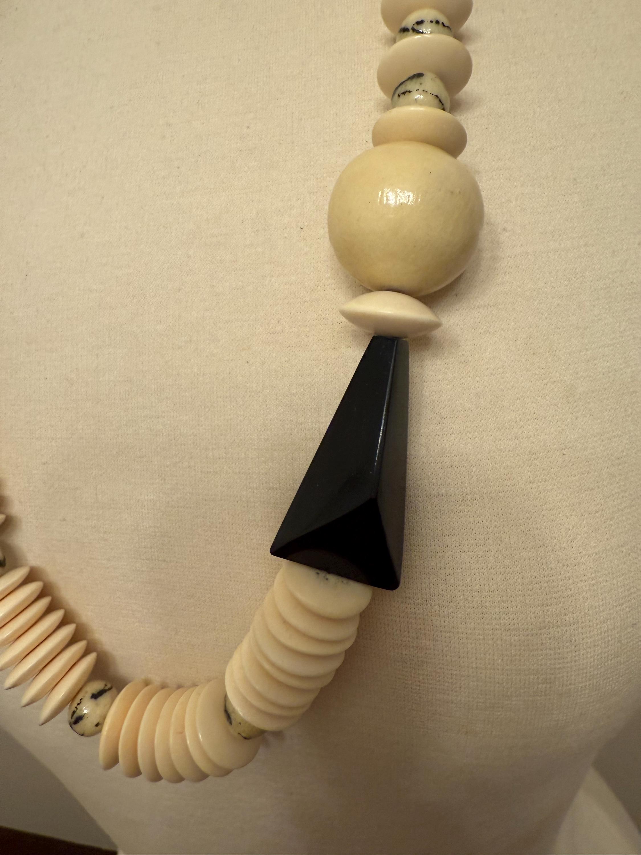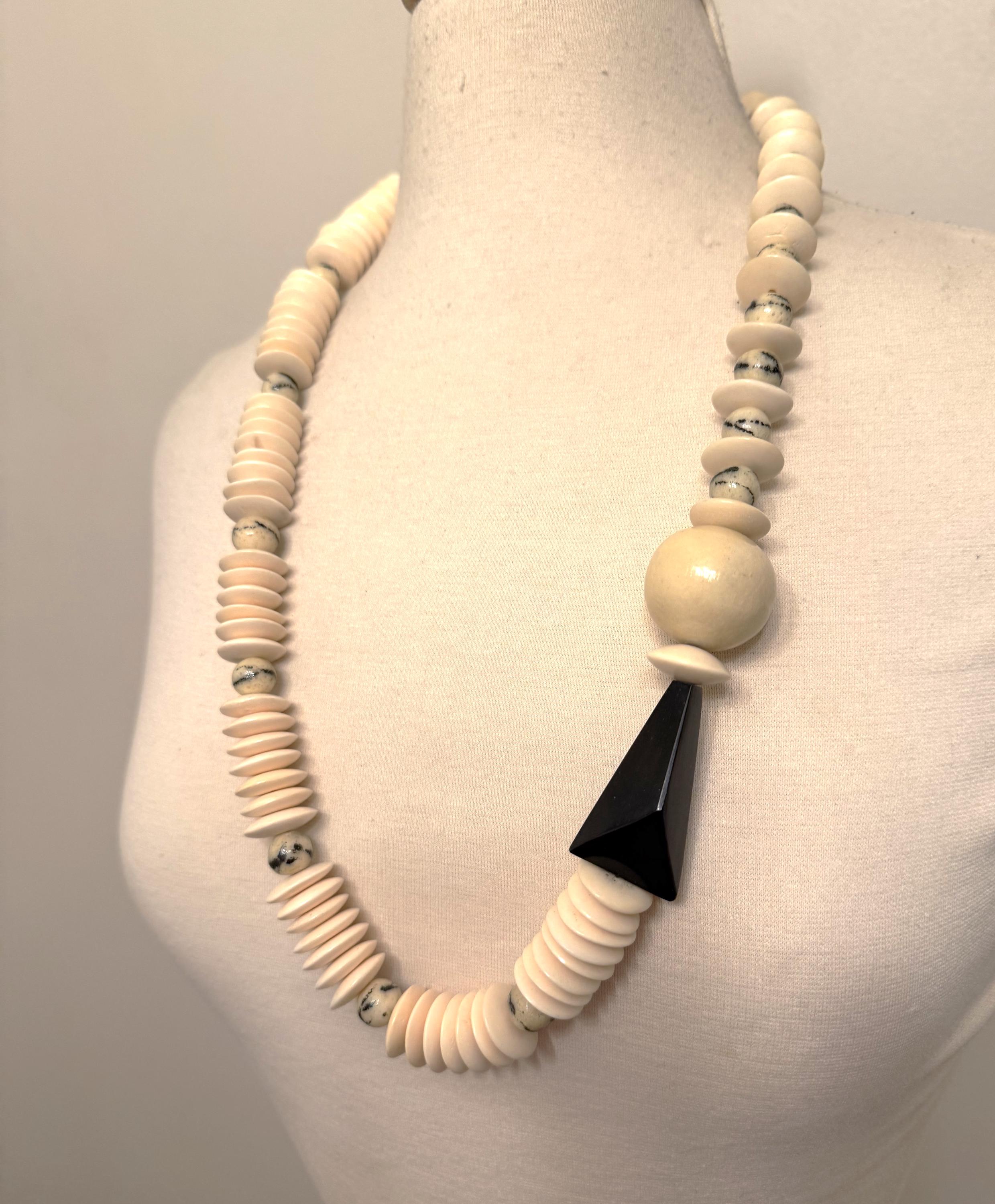 Vintage Statement Cream Color Resin & Wood Long Necklace