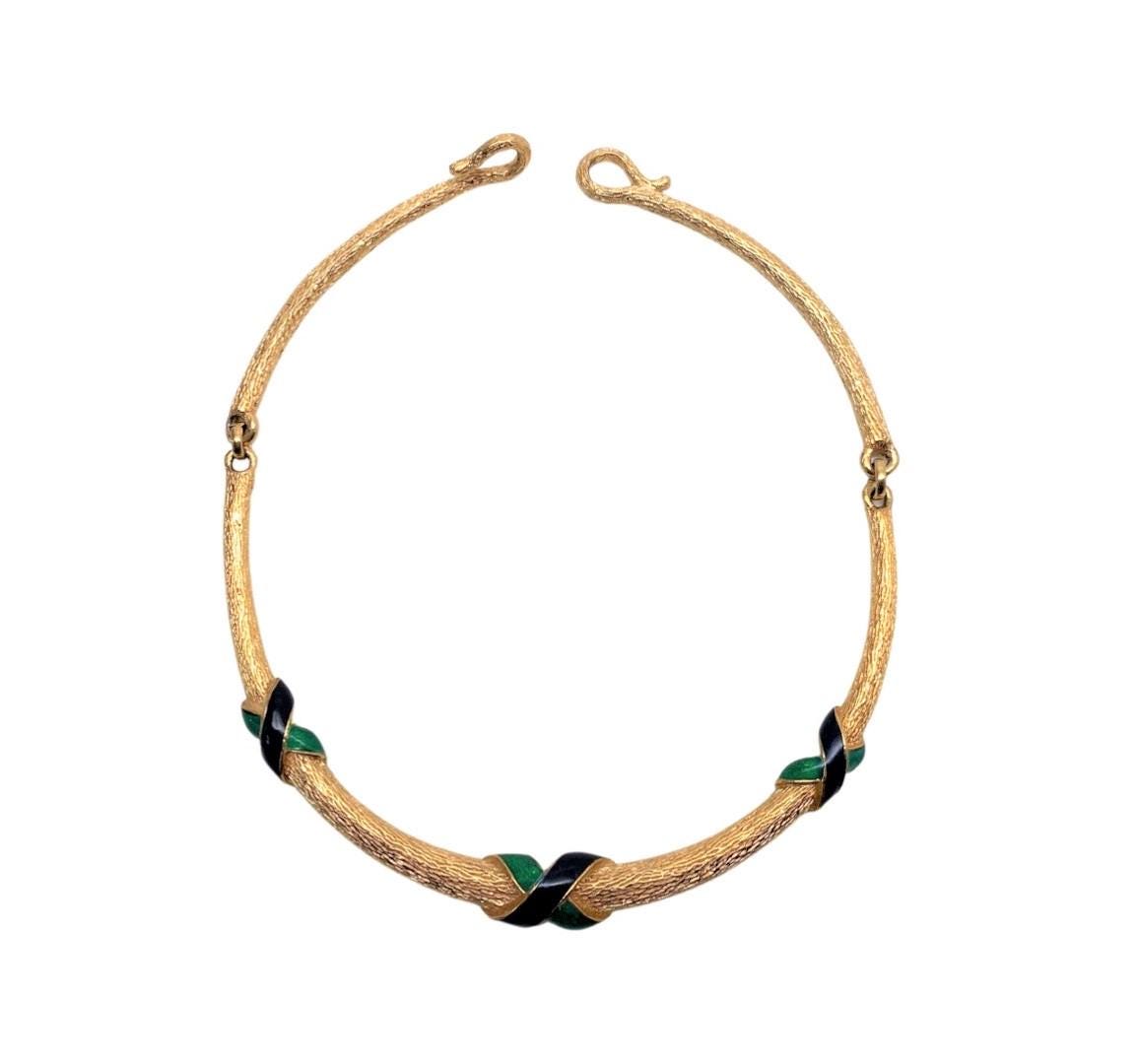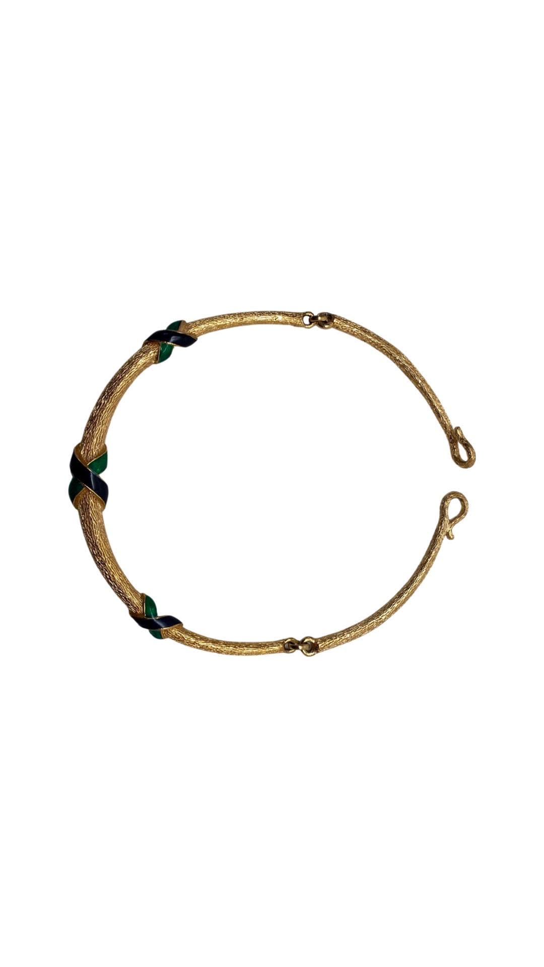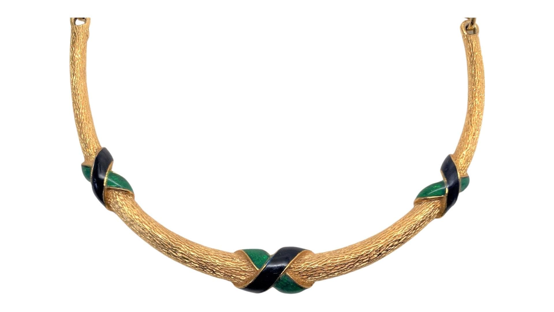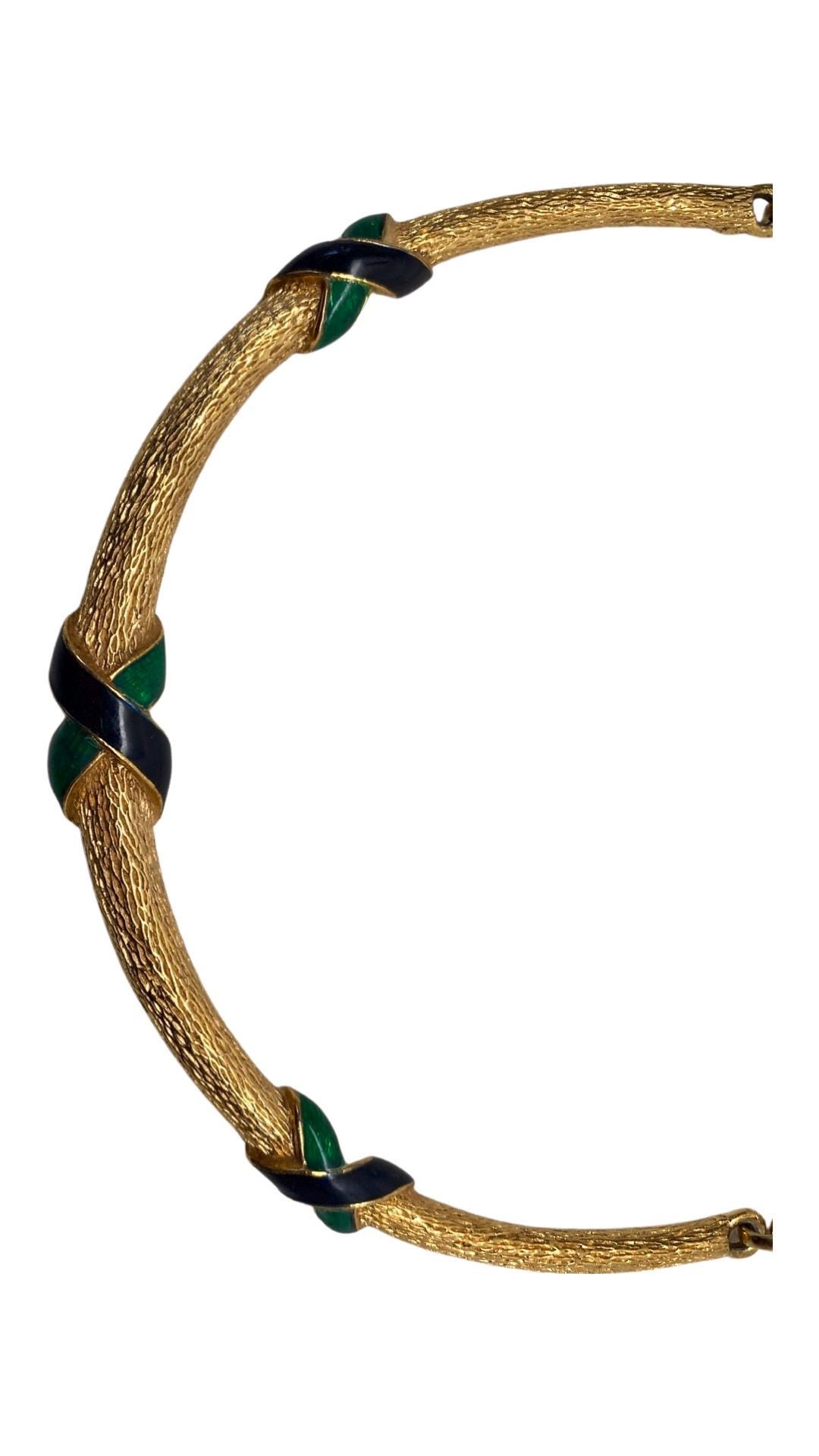 Vintage David Hill Blue & Green Enamel Gold Tone Collar Necklace