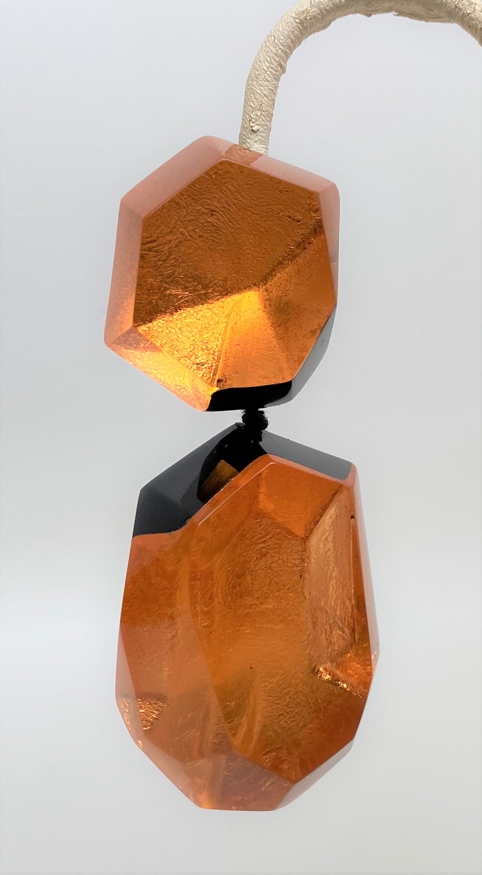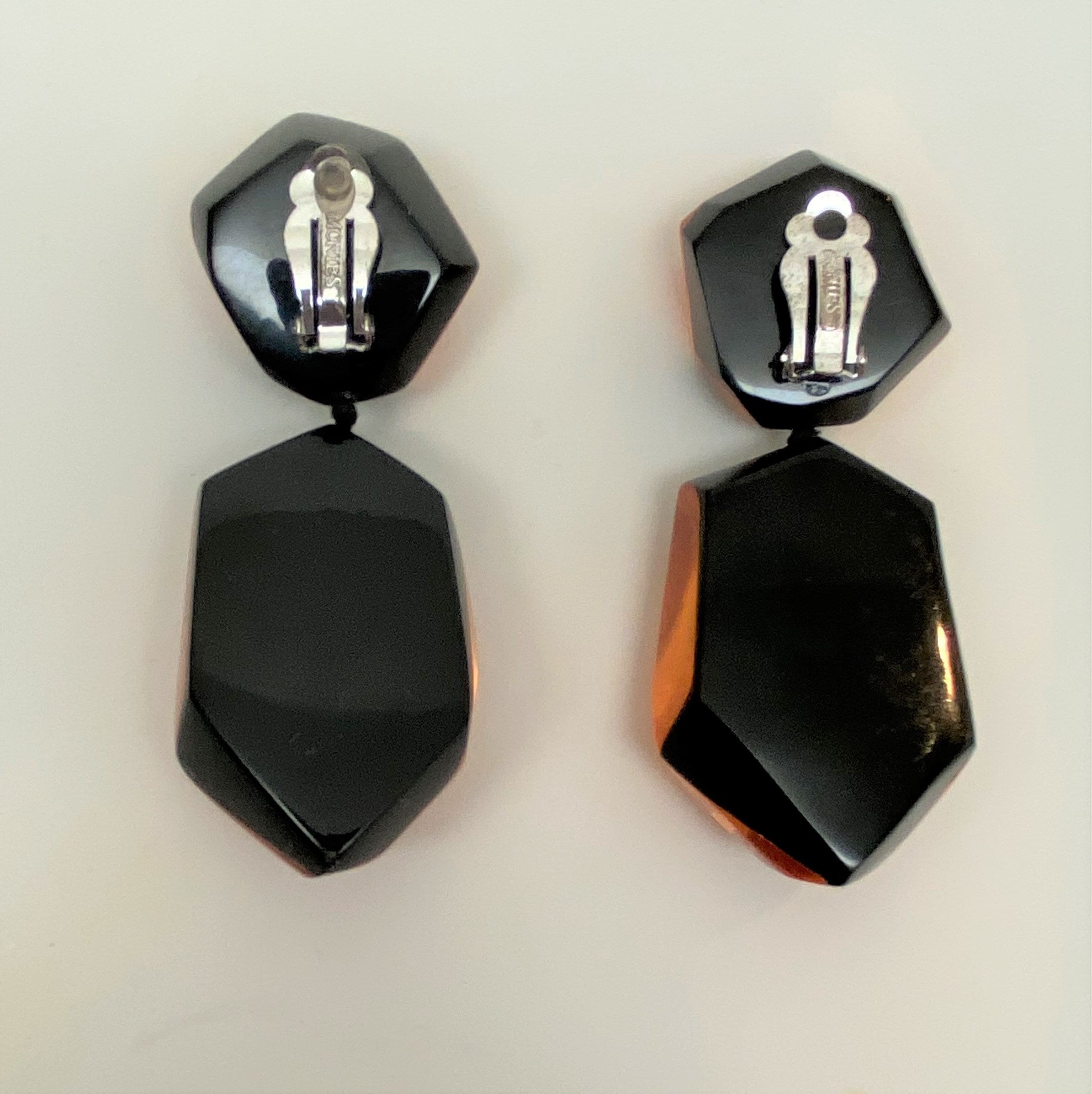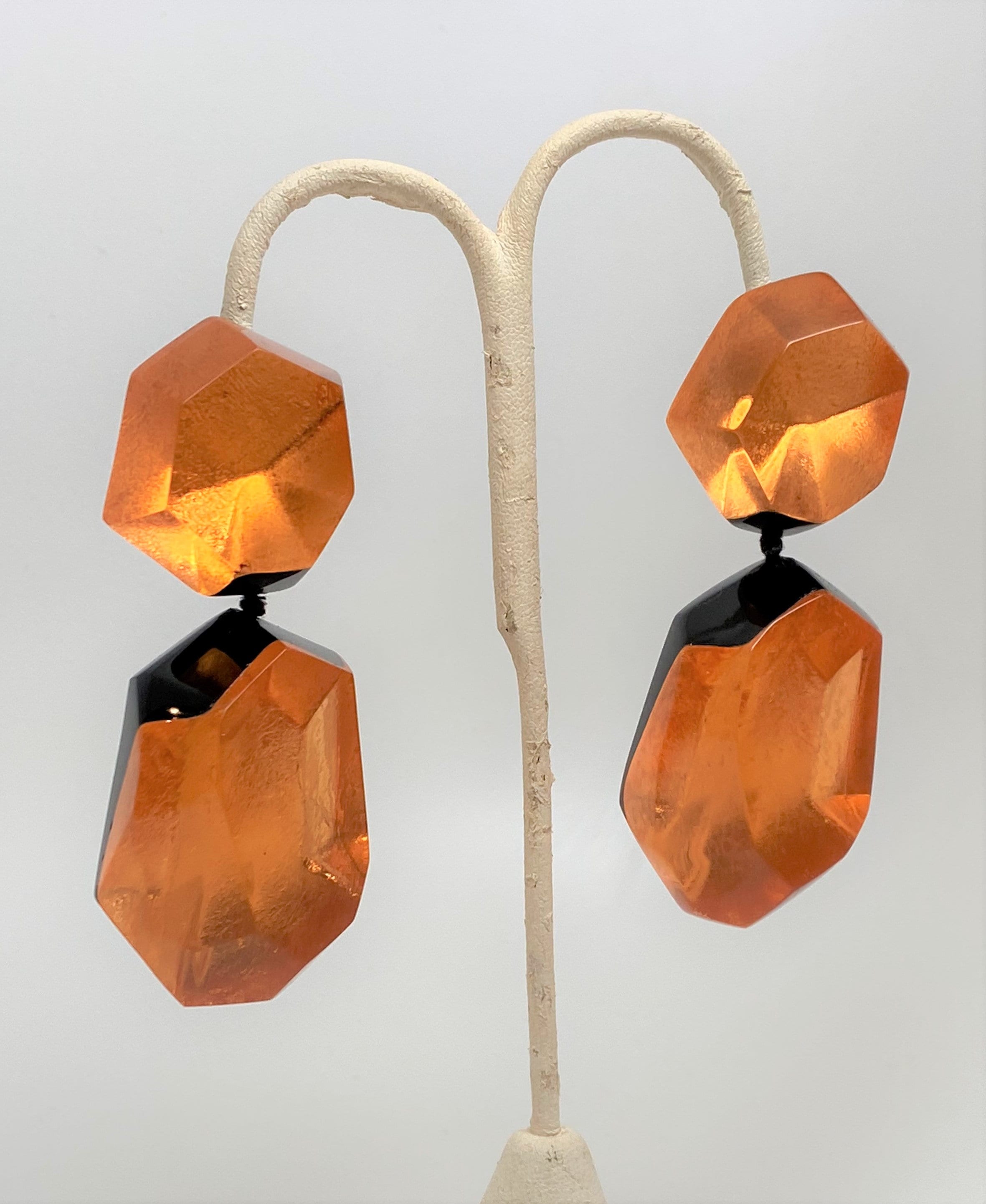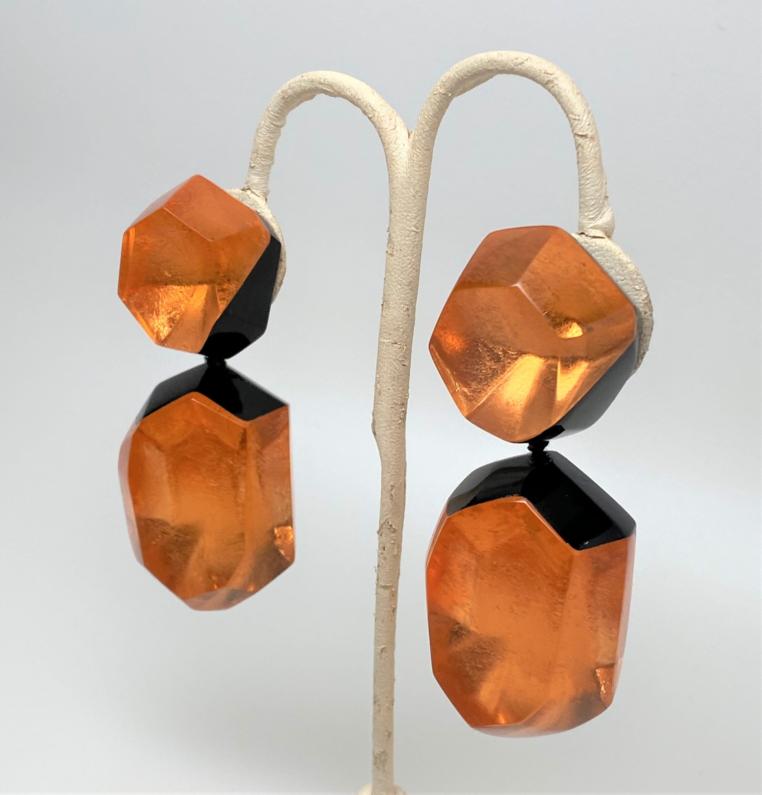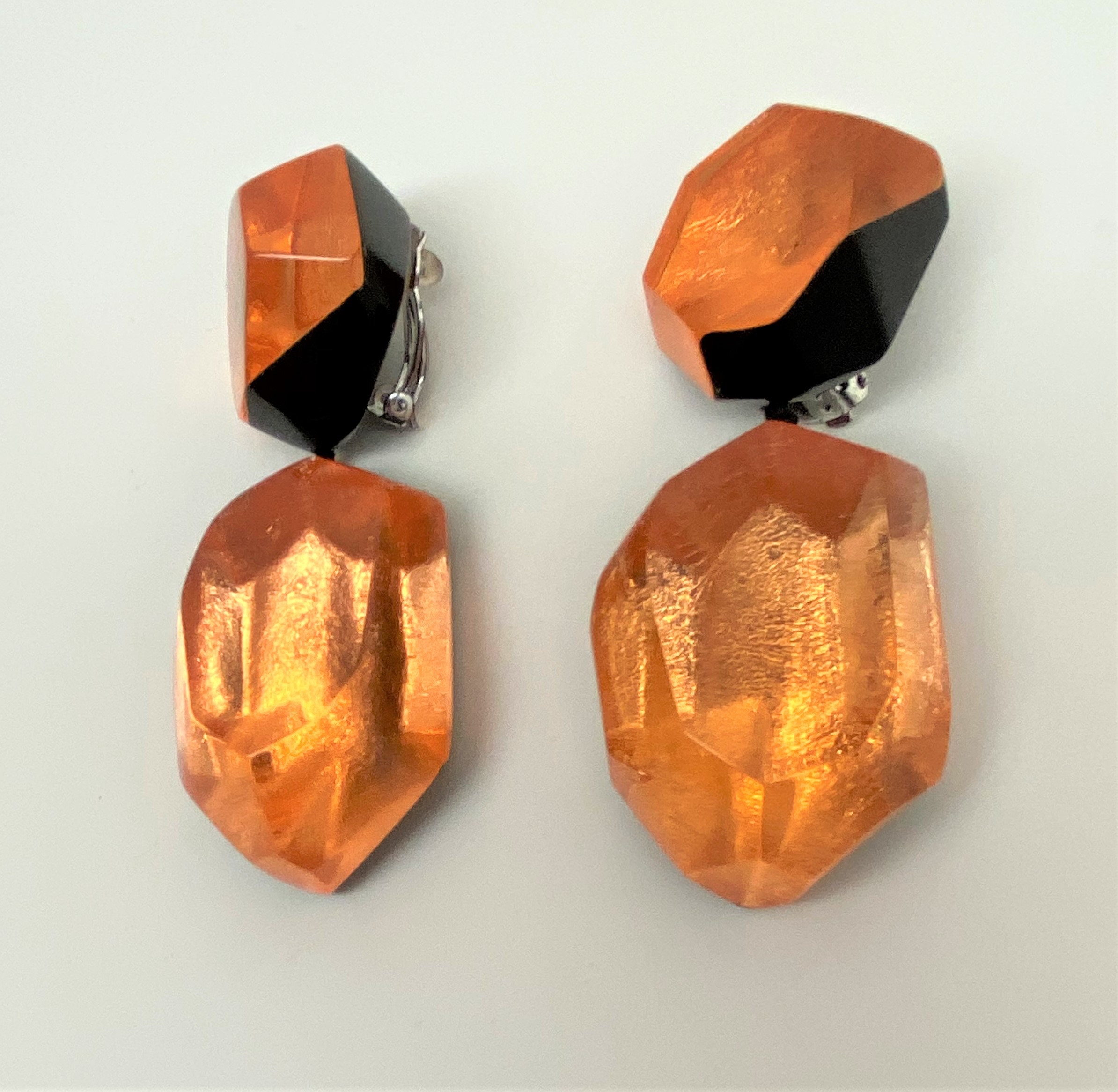 Danish Designer Gerda Lynggaard-Monies Orange Foil Lucite Large Clip On Earrings